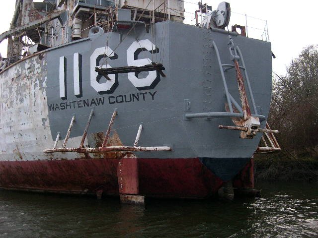 72k | Ex-USS Washtenaw County (LST-1166) undergoing restoration at Astoria, OR., 2005 | Erik Martin, Webmaster, Amphibious Forces Memorial Museum | |