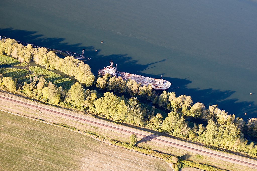 79k | An AP Wirephoto of Ex-USS Washtenaw County (LST-1166) moored along the Columbia River near St. Helens, Oregon in June, 2012. The ship is a 'vessel of concern' as State of Washington and State of Oregon officials are worried that the ship could leak or sink. This could lead to the possibility of oil or other wastes leaking into and polluting the river. | Mike Green | |
