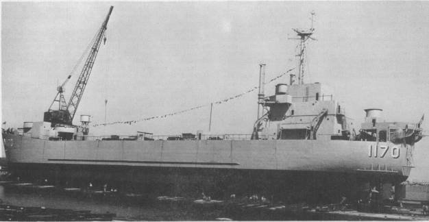 29k | USS LST-1170 ready for launching at Christy Shipbuilding Corp., Sturgeon Bay, WI., 21 April 1954. US Navy photo |
