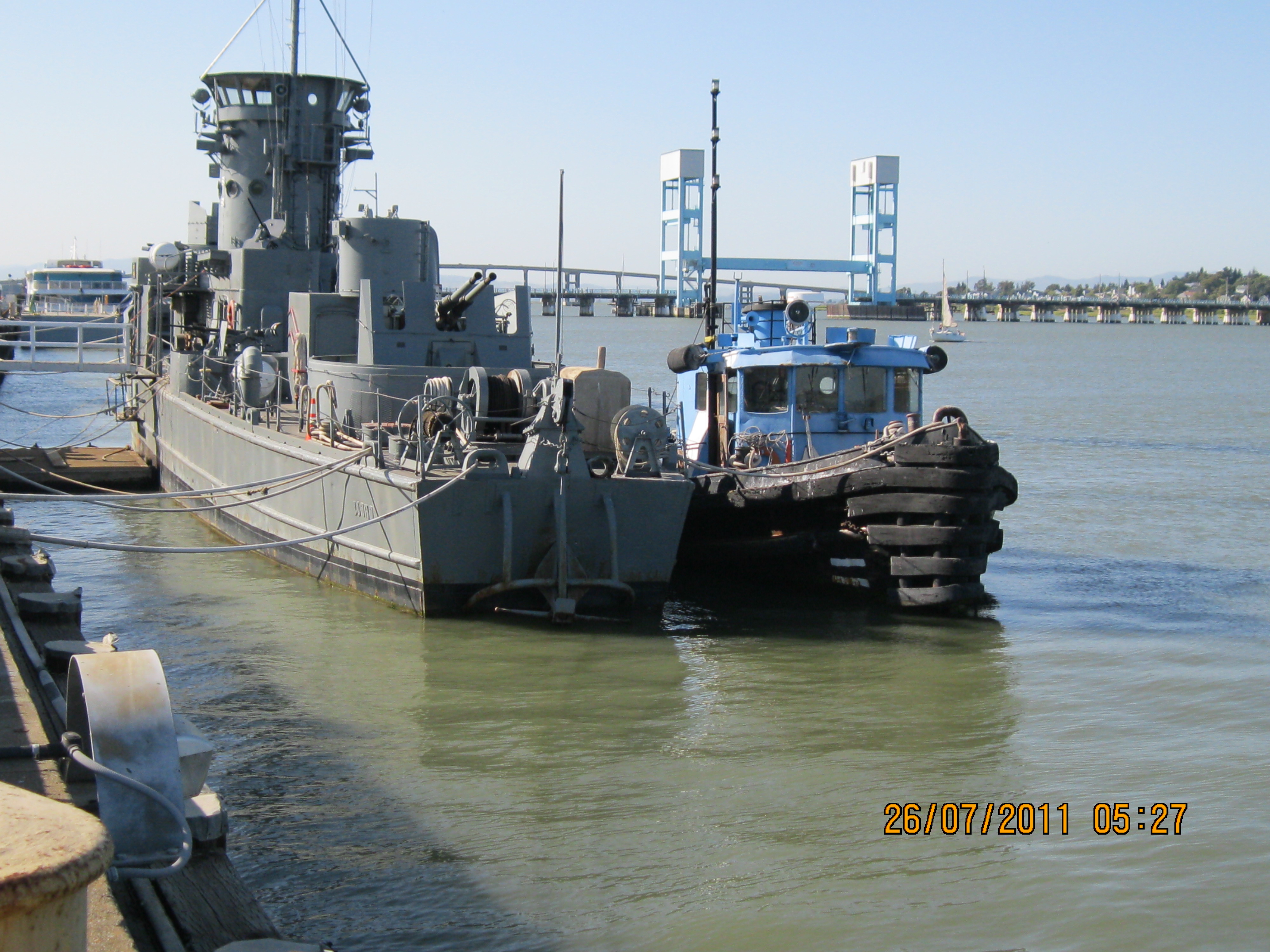 2239k | Eugene-H (ex-YTL-434) moored outboard of ex-USS LSSL-102 at Mare Island, 26 July 2011 | Photo by Phil Mattingly | |