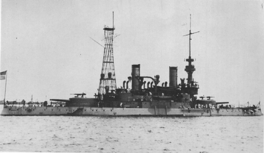 243k | Colorful Indiana (BB-1) offshore with a building in the background for company. | Photo and text courtesy of USNHHC via Tommy Trampp. | ||||||||||||||||||||||||||||||||||||||||||||||||||||||||||||||||||||||||||||||||||||||||||||||||||||||||||