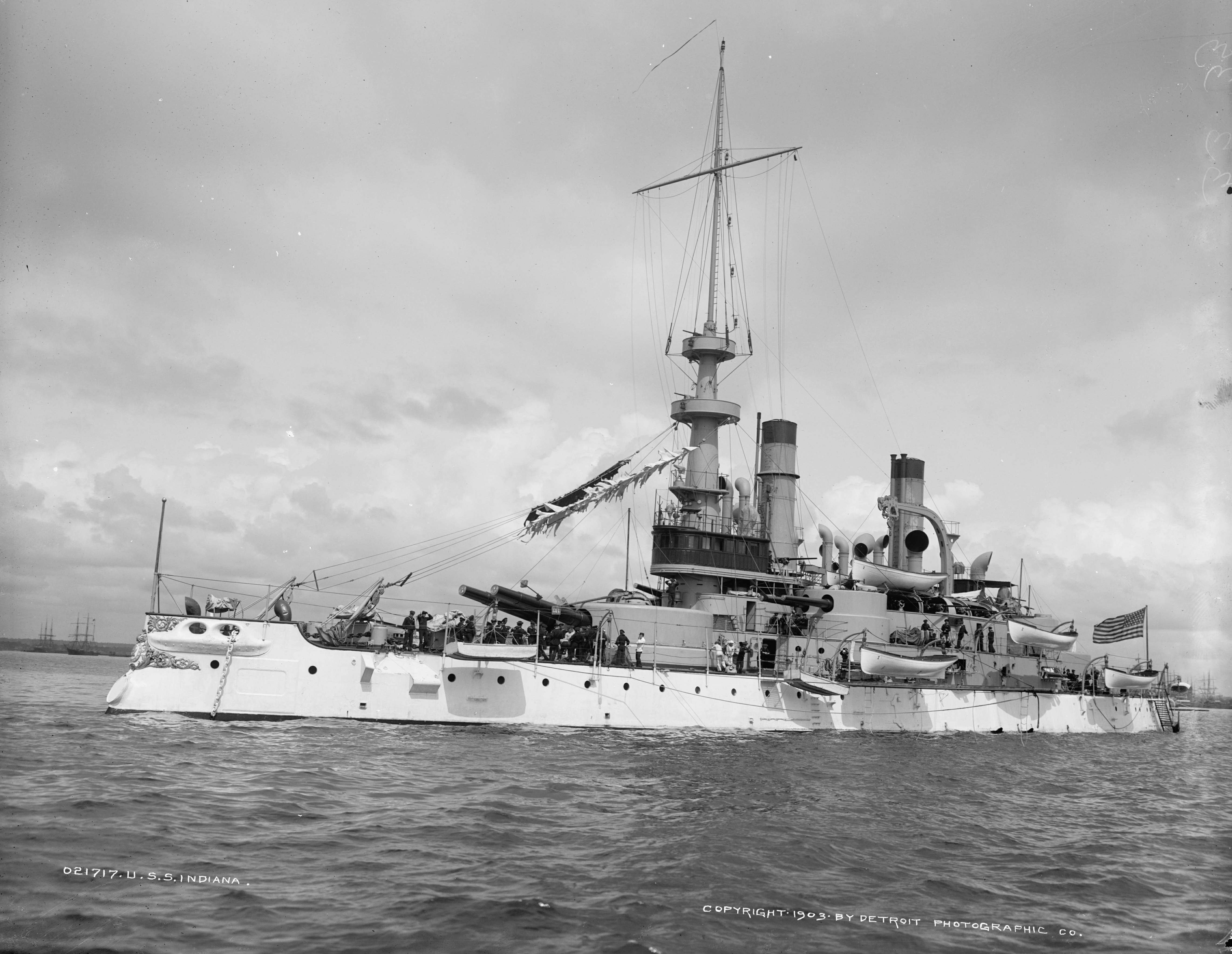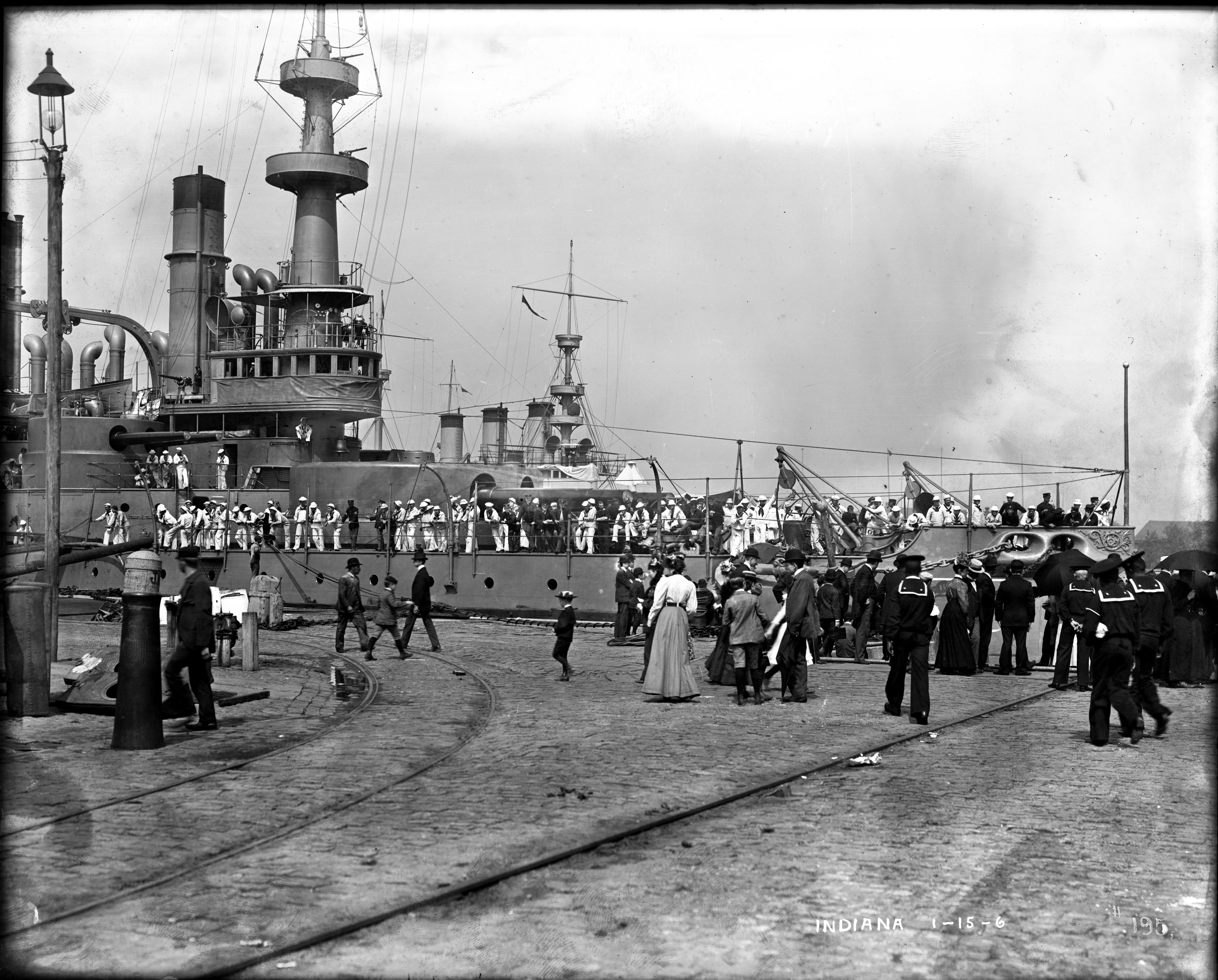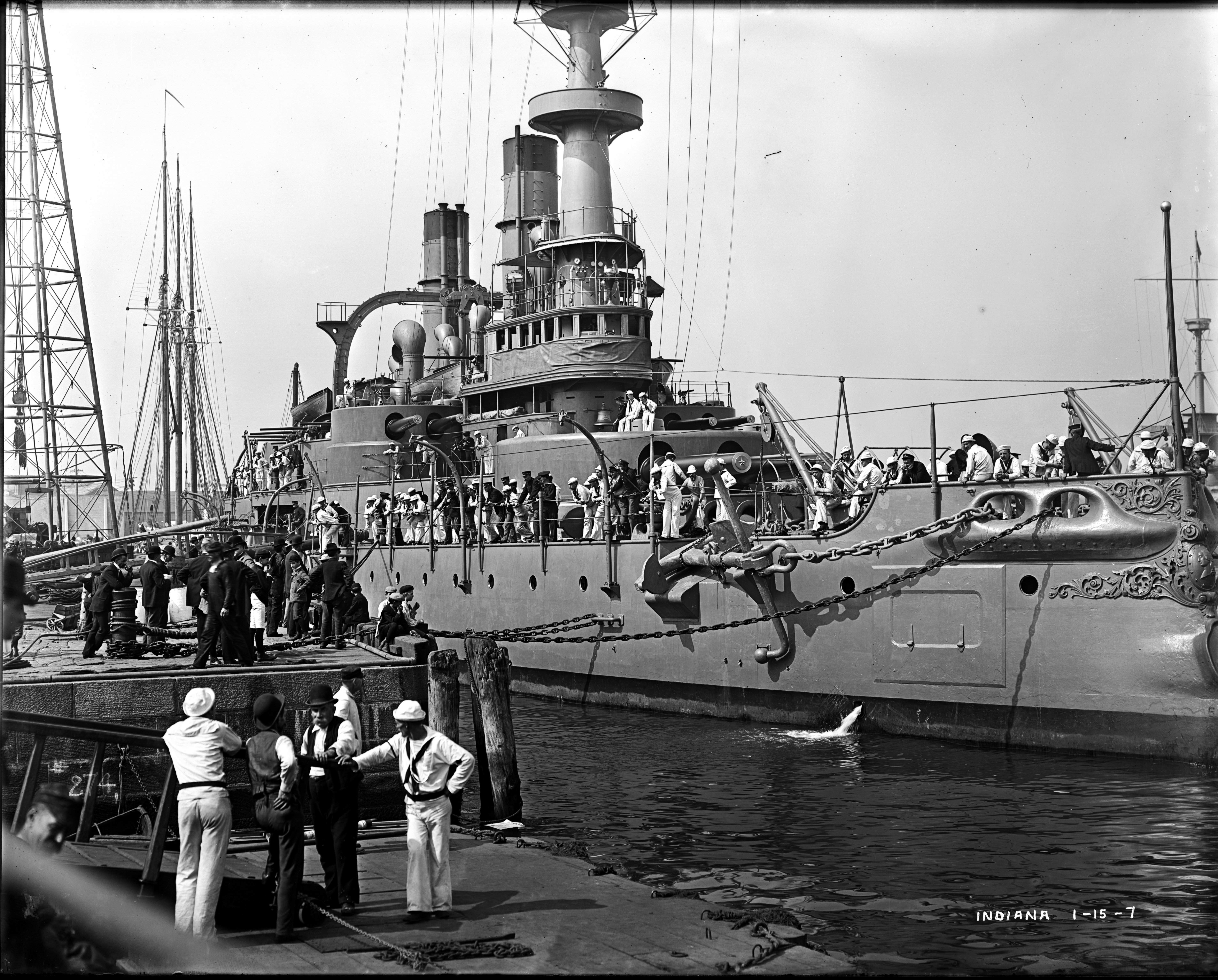 2.25k | A commissioned warship. Indiana (BB-1) is painted on her bow as of November 1895, which fits with the heavier clothing worn by her sailors. | National Archives Identifier: 179036274 Local Identifier: 19-NN-1-14-10. Photo courtesy of catalog.archives.gov, via Daniel Hacker. | ||||||||||||||||||||||||||||||||||||||||||||||||||||||||||||||||||||||||||||||||||||||||||||||||||||||||||