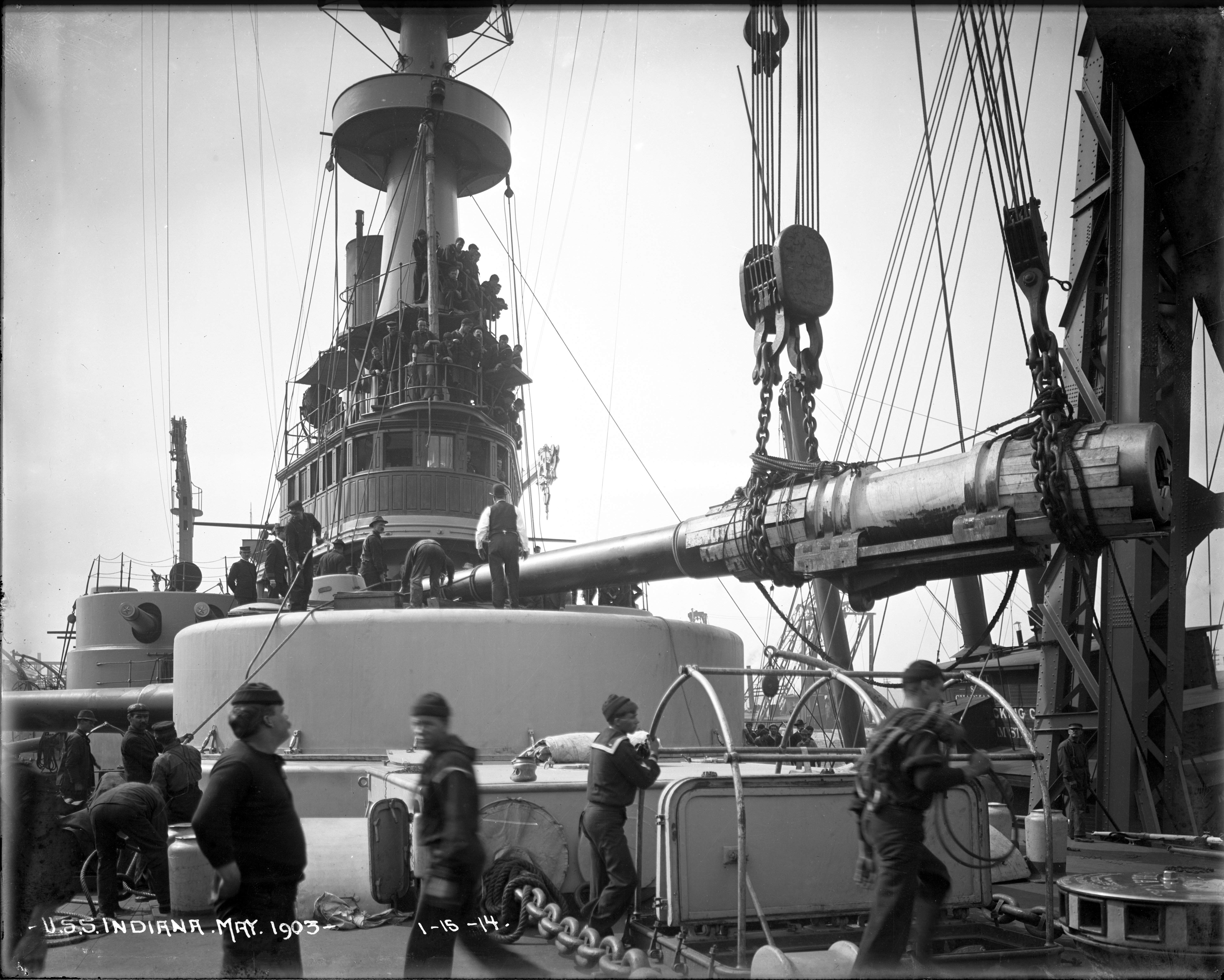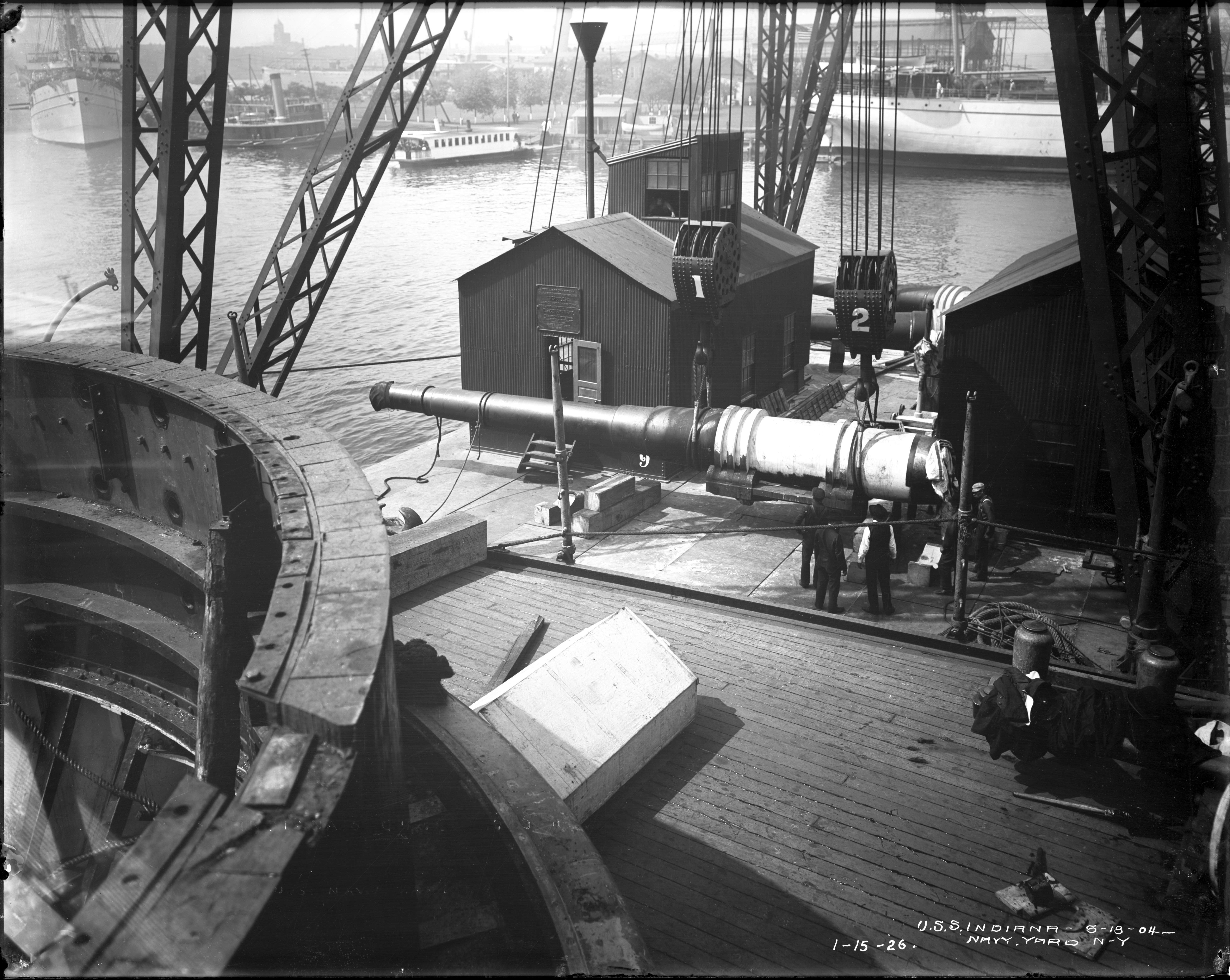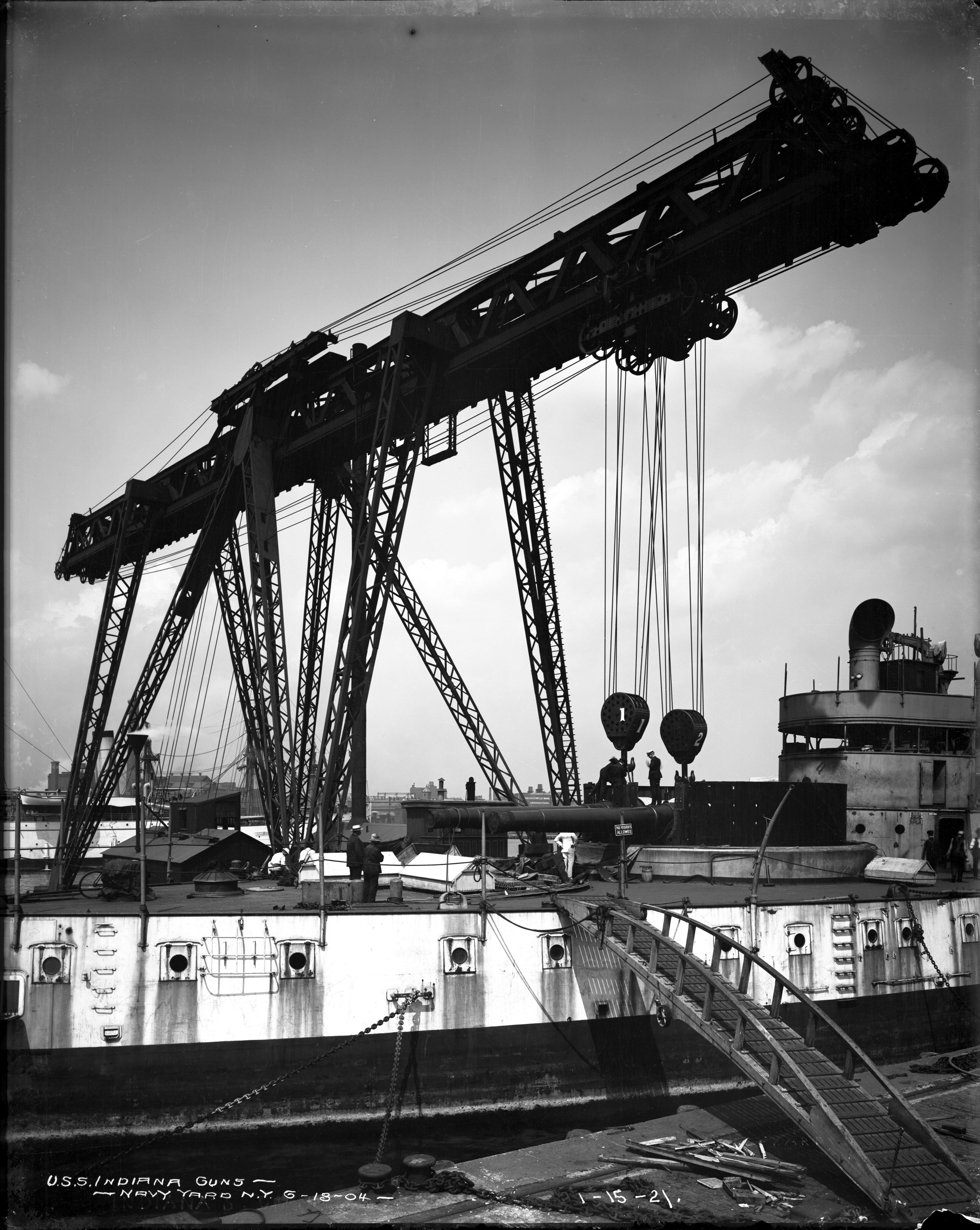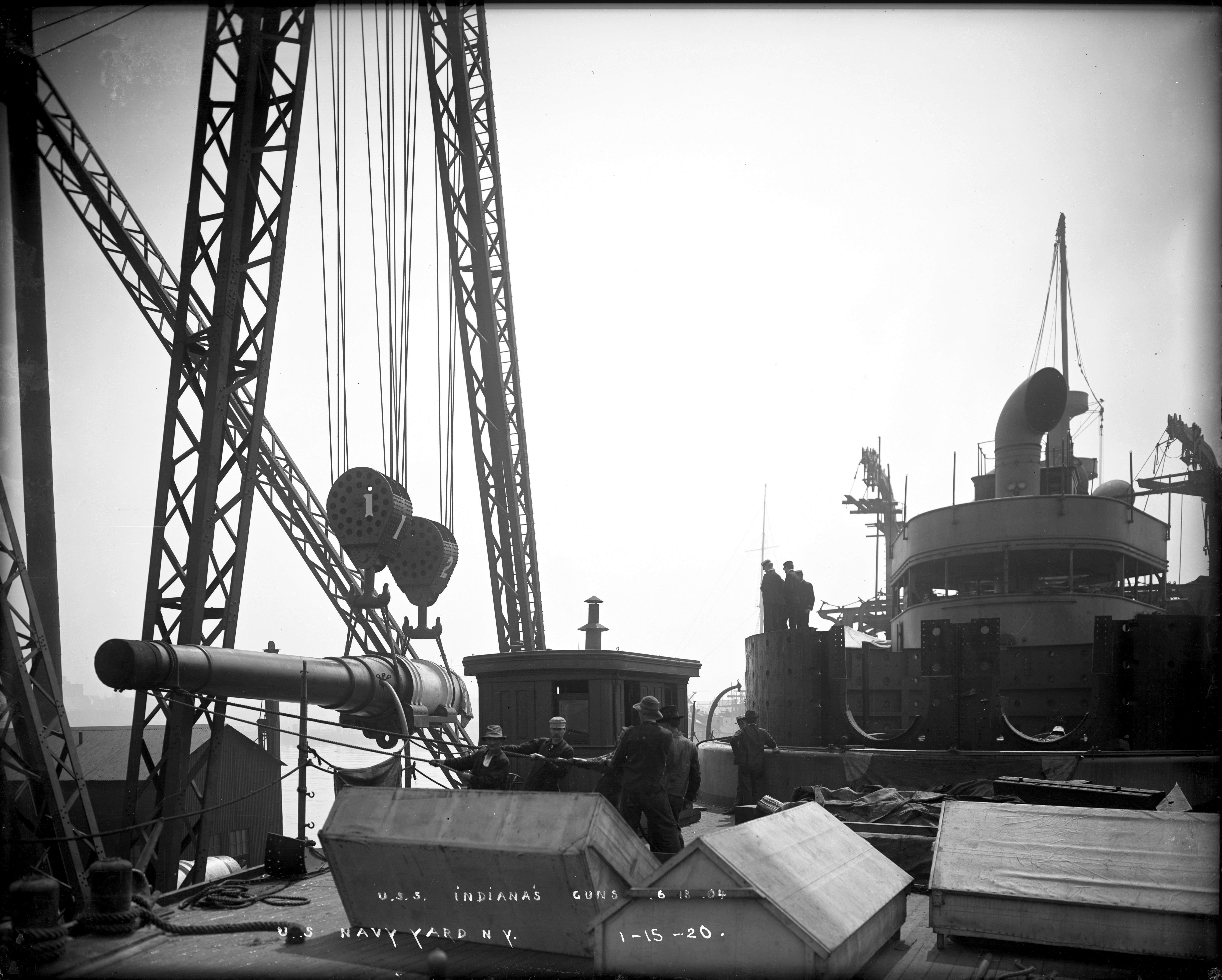 2.95k | Bow on view of Indiana (BB-1) fitting out dockside, empty turrets as of 26 June, 1895. | National Archives Identifier: 179036436 Local Identifier: 19-NN-1-12-11. Photo courtesy of catalog.archives.gov, via Daniel Hacker. | ||||||||||||||||||||||||||||||||||||||||||||||||||||||||||||||||||||||||||||||||||||||||||||||||||||||||||