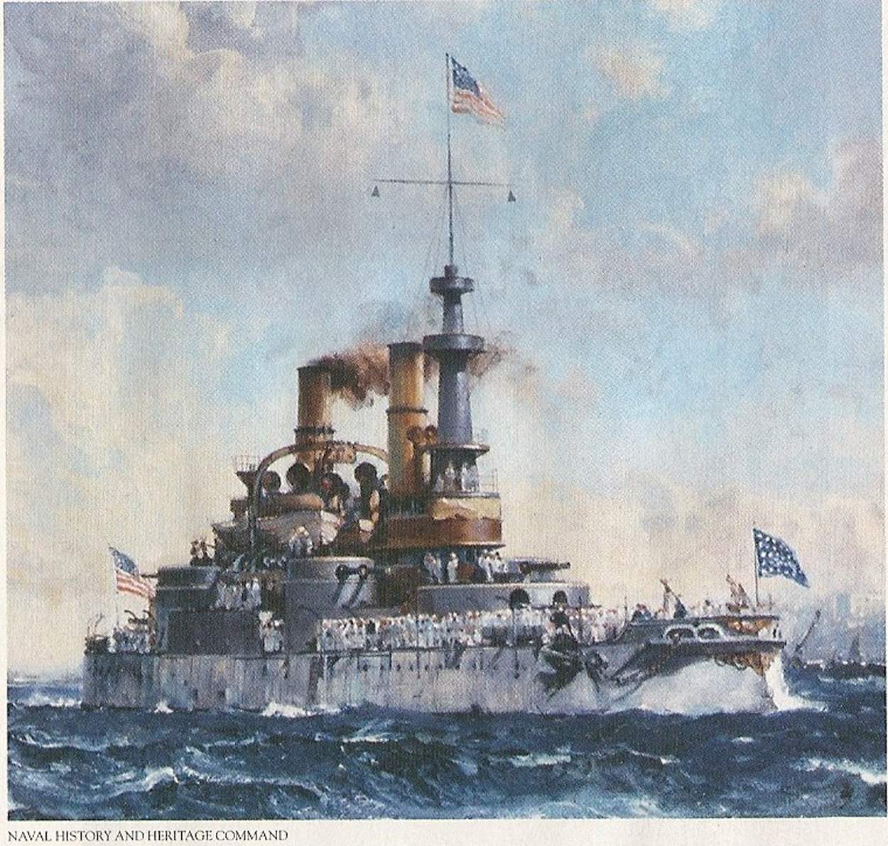 2.30k | Anchor away from the starboard bow chained to the side, view of the Indiana's (BB-1) bell above the front turret, wheel of the vessel above the pilot house & lots of action on the eyes of the ships company & crowd. | National Archives Identifier: 179036310 Local Identifier: 19-NN-1-15-7. Photo courtesy of catalog.archives.gov, via Daniel Hacker. | ||||||||||||||||||||||||||||||||||||||||||||||||||||||||||||||||||||||||||||||||||||||||||||||||||||||||||