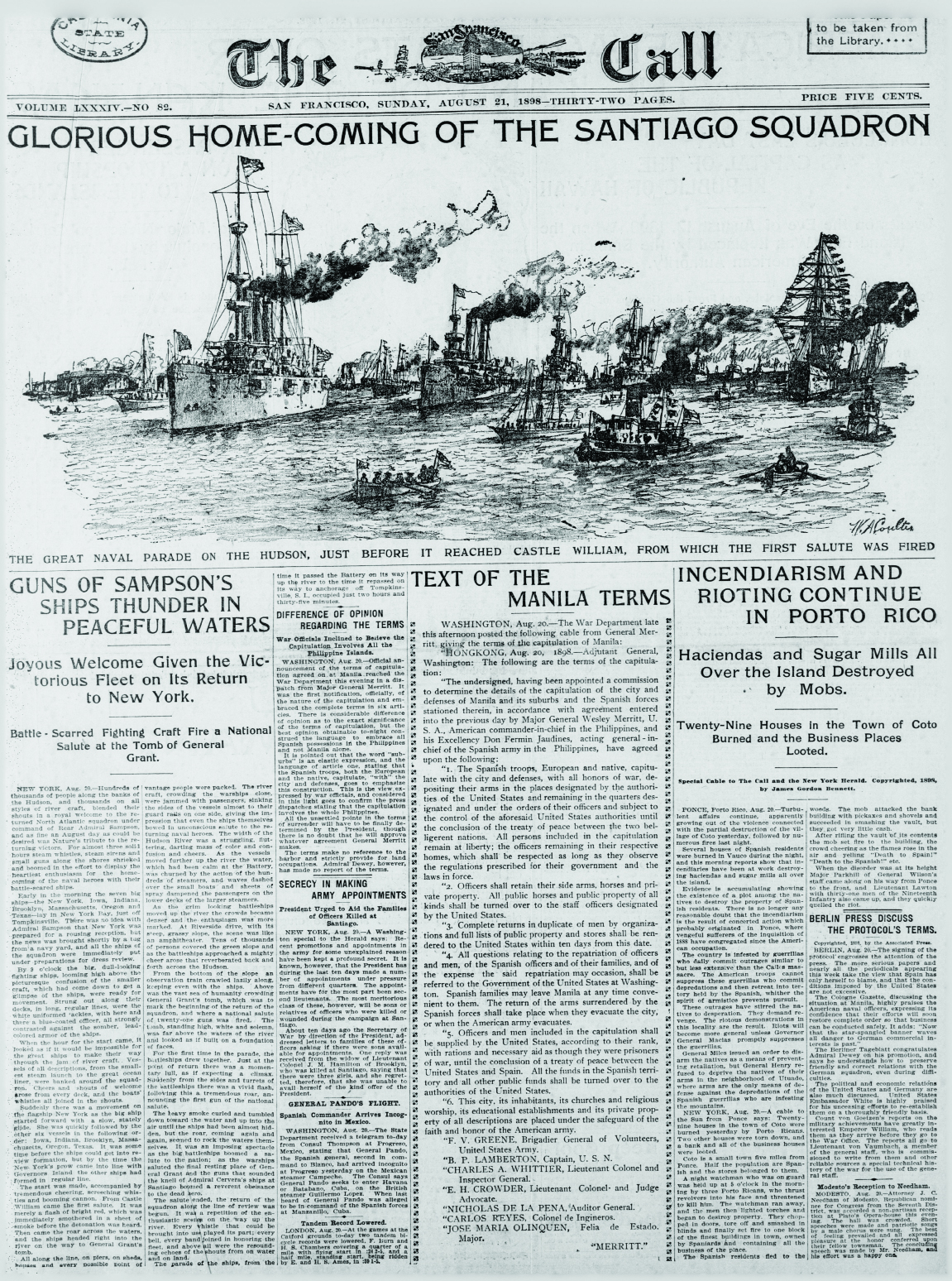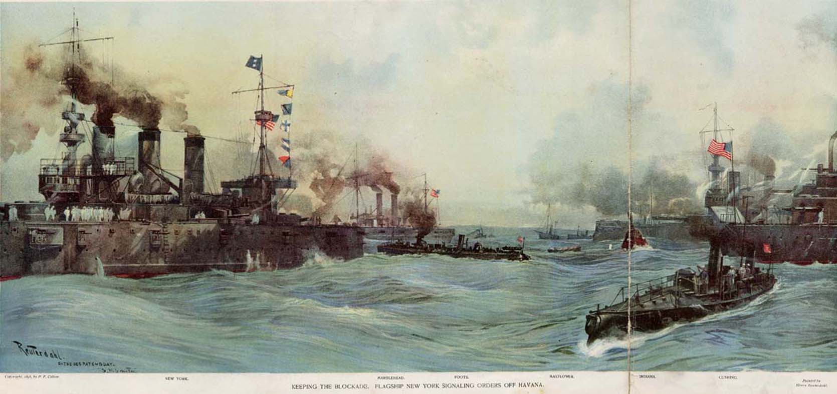 NR | READY TO FREE CUBA AT THE WORD FROM CONGRESS New York (CA-2), Columbia (C-12), Indiana (BB-1), Ericsson (TB-02), Texas, Montgomery (C-09), Iowa (BB-4), Cushing (TB-01), & Massachusetts (BB-2). | Image and text provided by University of California, Riverside; Riverside, CA. Photo from The Herald. [volume] (Los Angeles [Calif.]) 1893-1900, 27 March 1898, Image 19, via chroniclingamerica.loc.gov. | ||||||||||||||||||||||||||||||||||||||||||||||||||||||||||||||||||||||||||||||||||||||||||||||||||||||||||