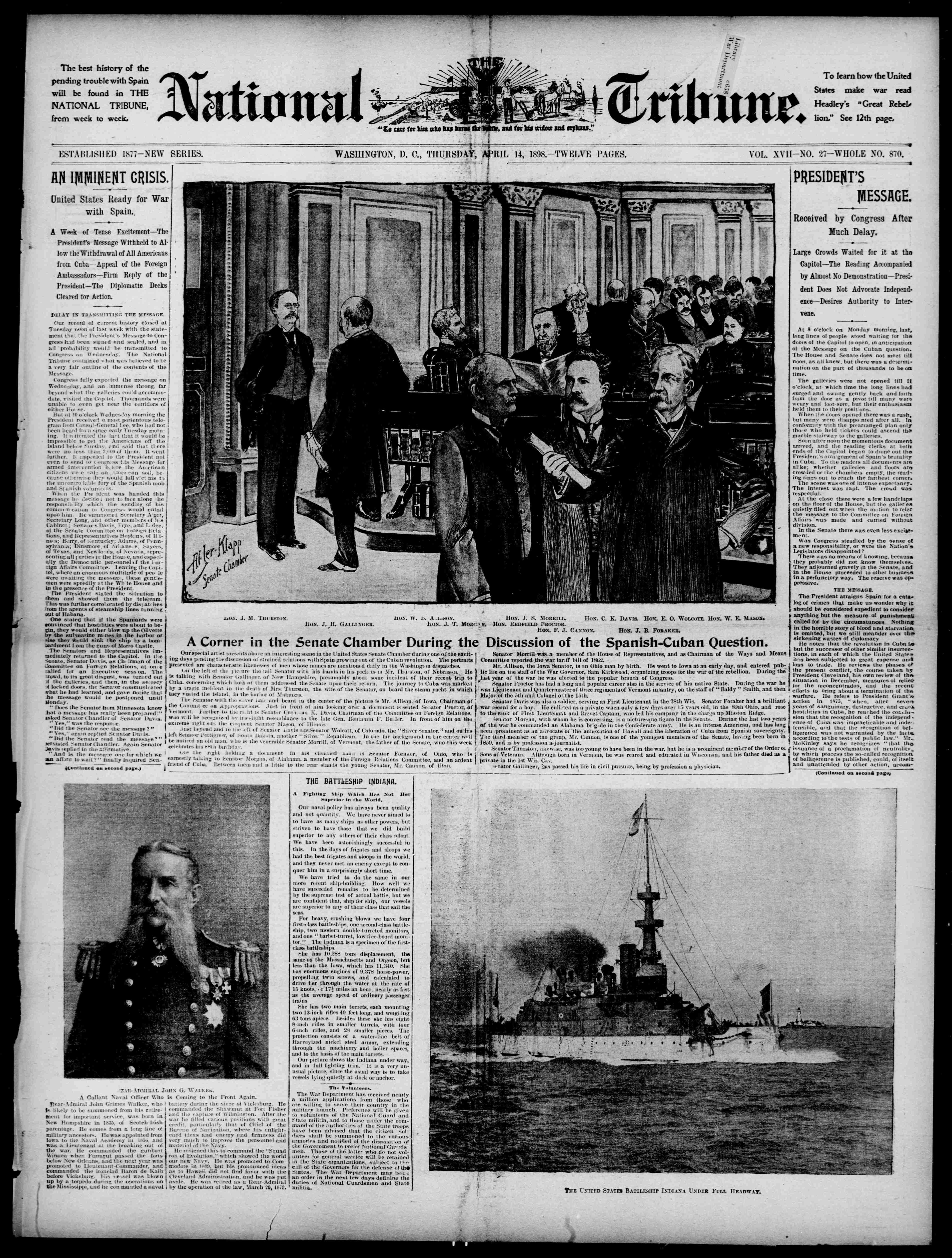 2.10k | THE UNITED STATES BATTLESHIP INDIANA (BB-1) UNDER FULL HEADWAY | Photo from The National Tribune. (Washington, D.C.) 1877-1917, 14 April 1898, Image 1, via chroniclingamerica.loc.gov. | ||||||||||||||||||||||||||||||||||||||||||||||||||||||||||||||||||||||||||||||||||||||||||||||||||||||||||