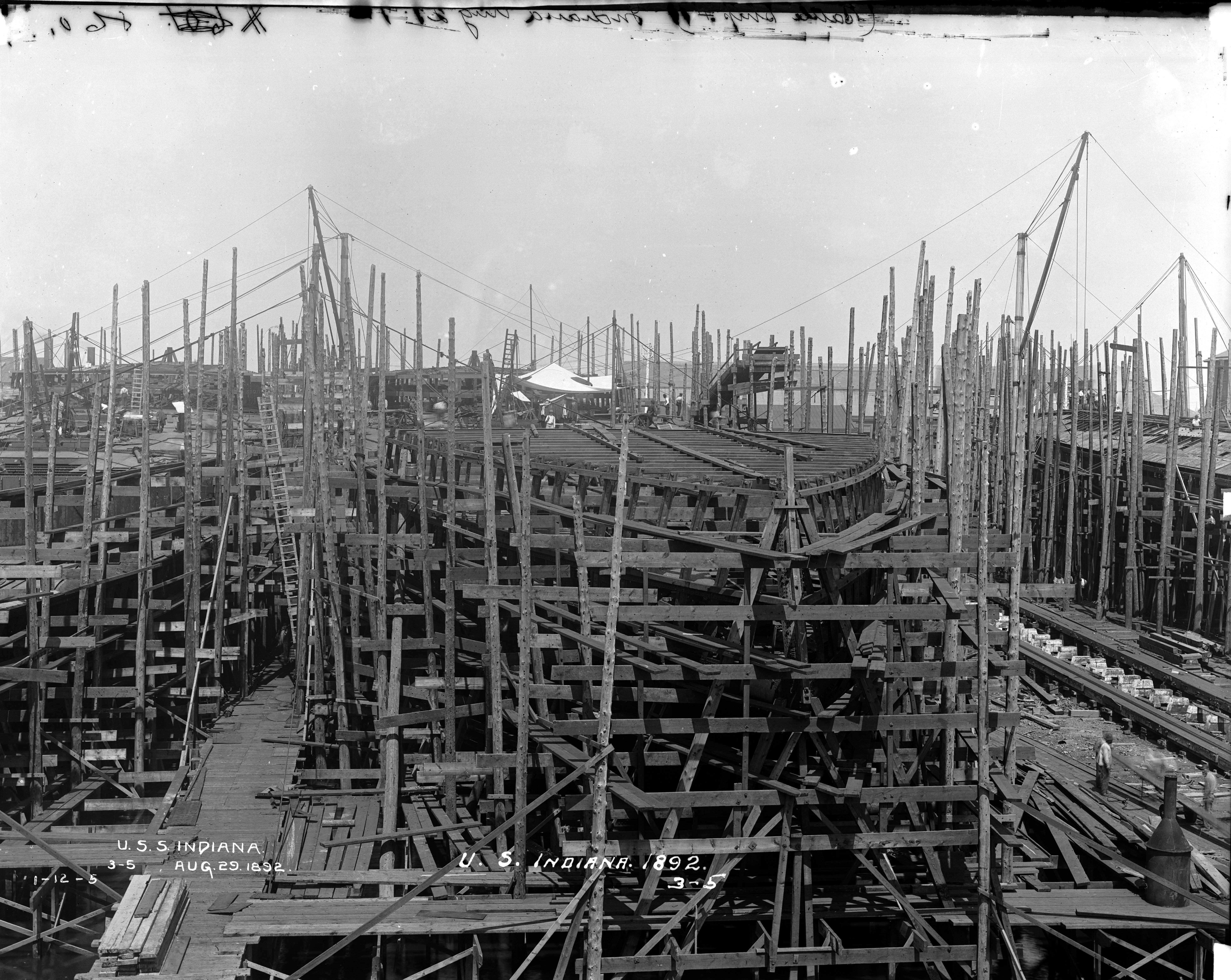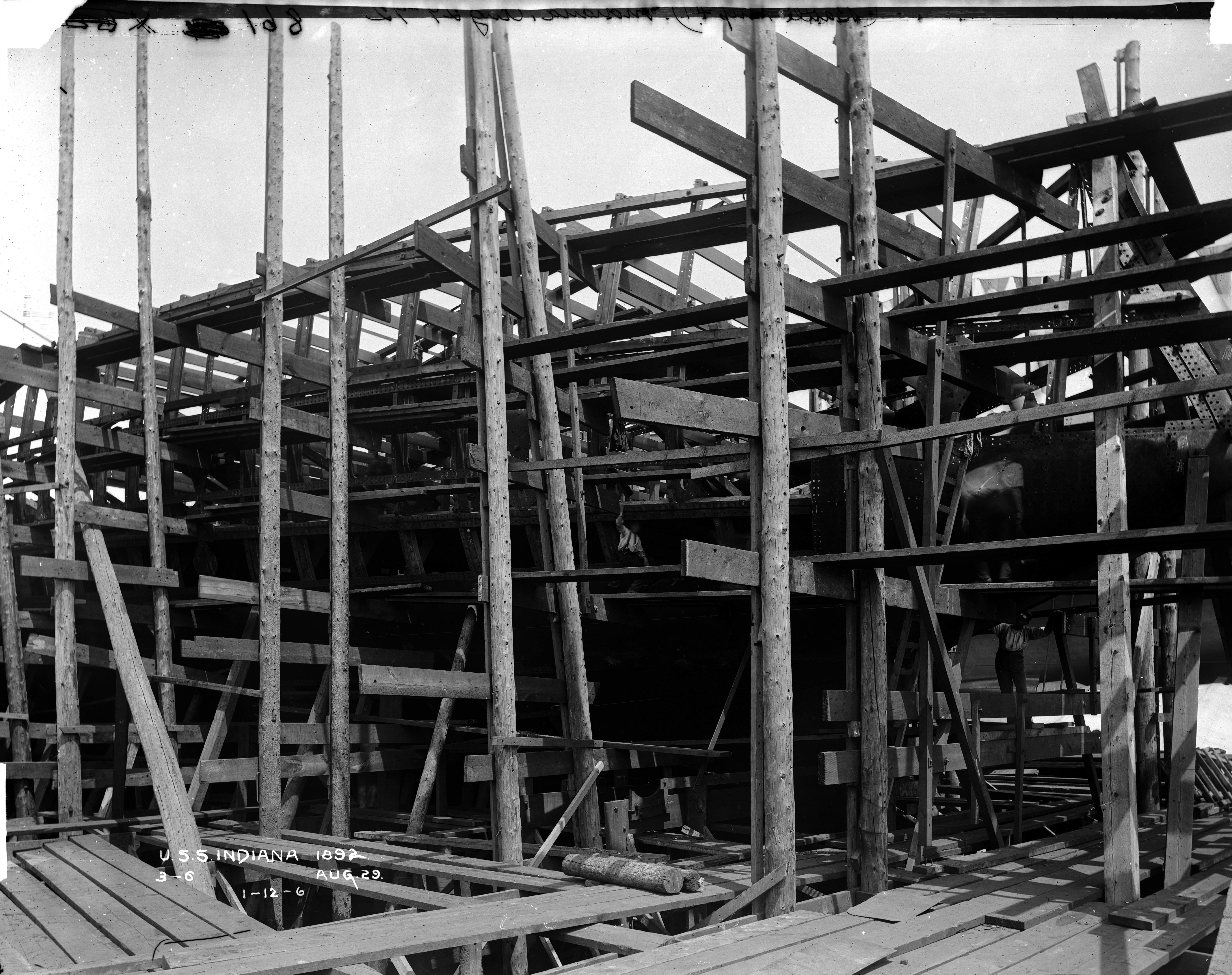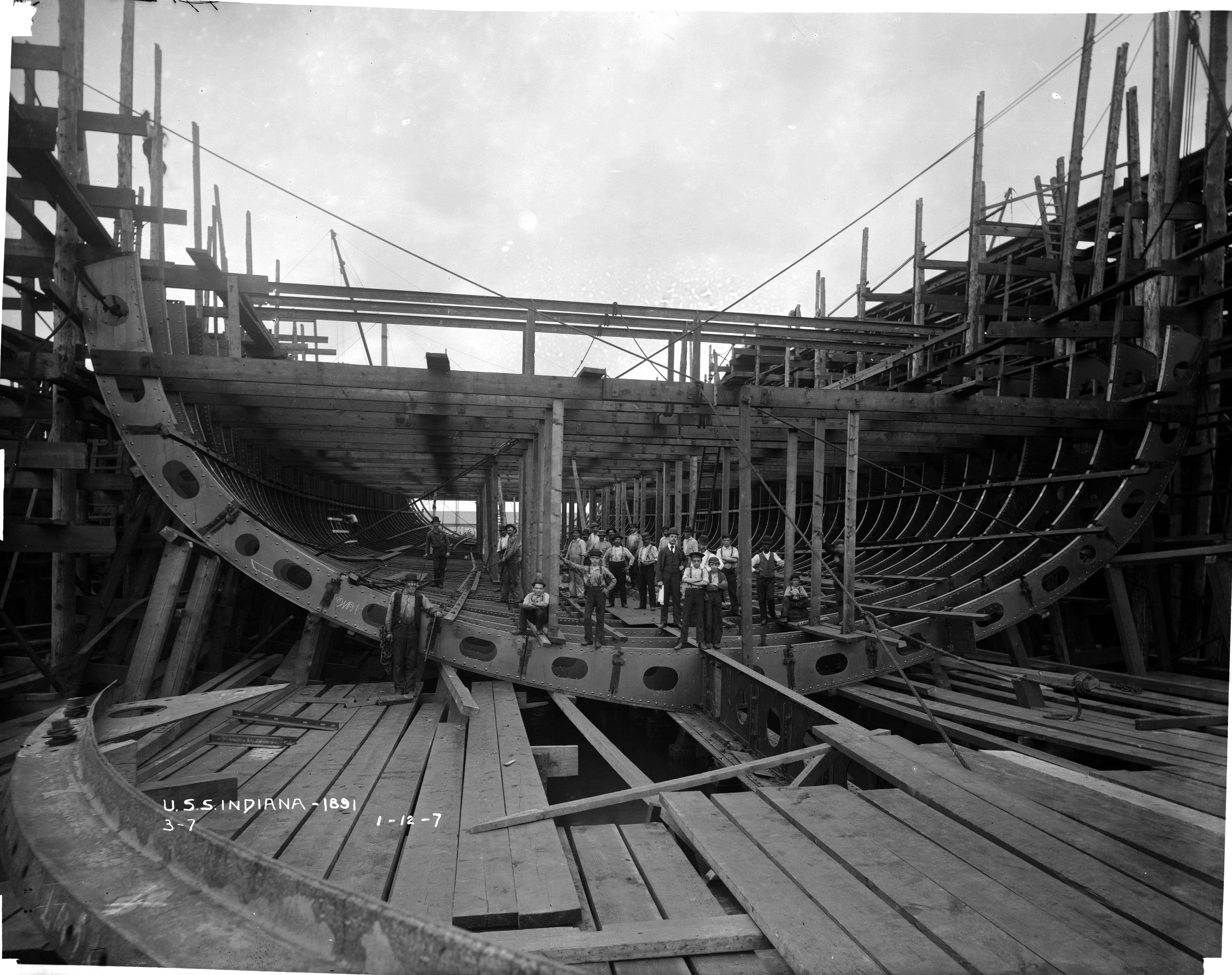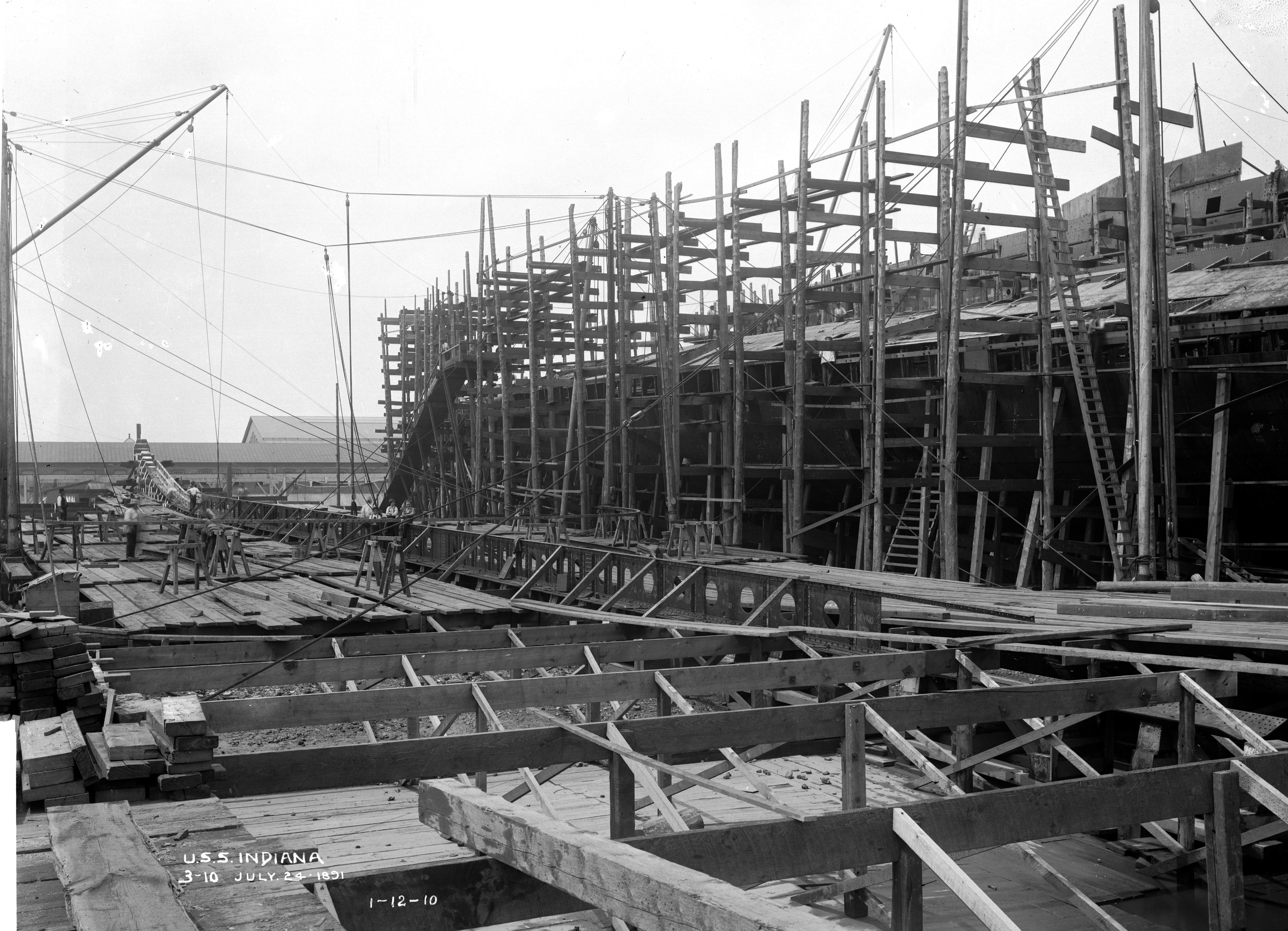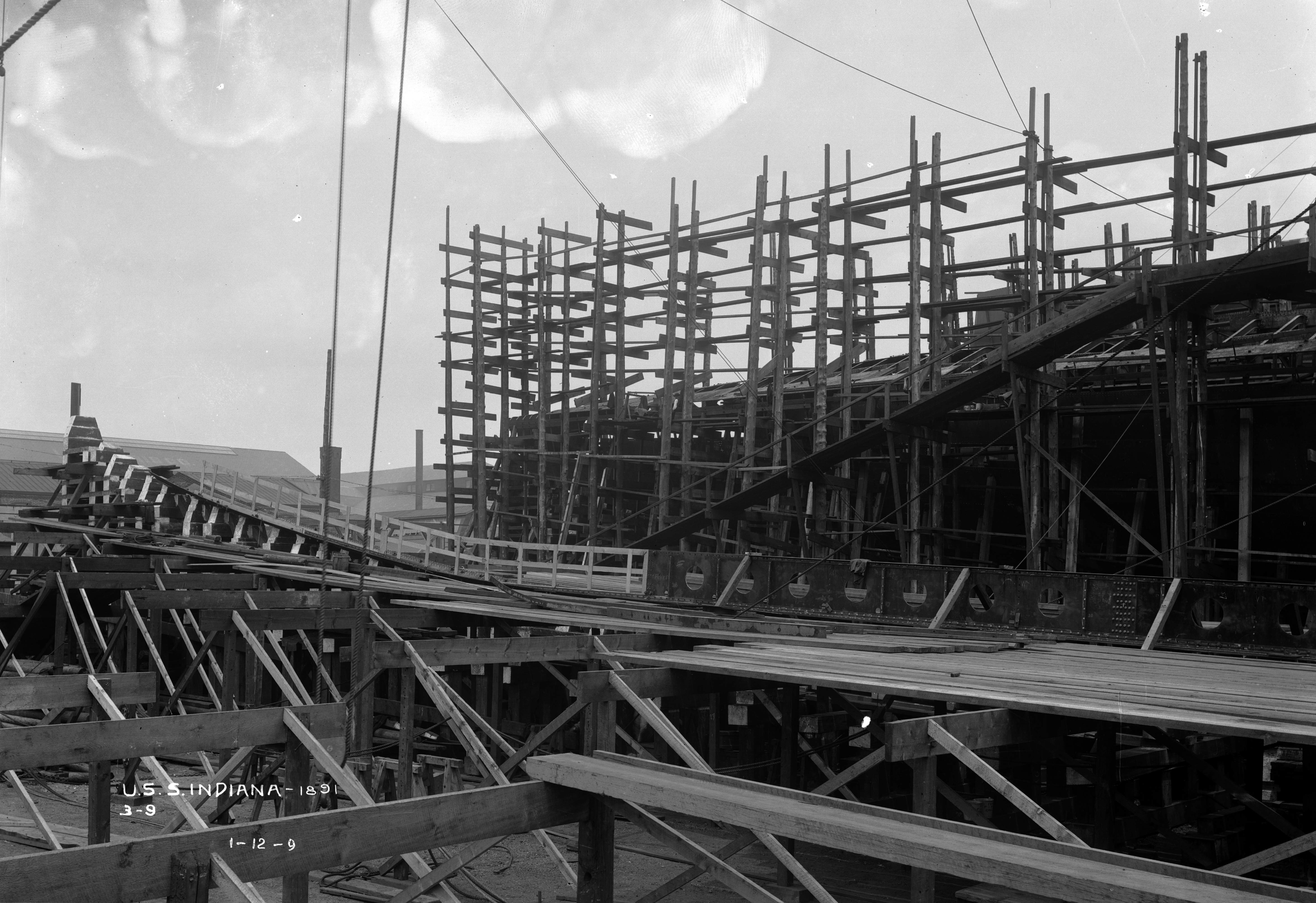 2.54k | Indiana (BB-1) under construction at Cramp Shipbuilding, Philadelphia, Pa., 24 July 1891. | National Archives Identifier: 179036434 Local Identifier: 19-NN-1-12-10. Photo courtesy of catalog.archives.gov, via Daniel Hacker. | ||||||||||||||||||||||||||||||||||||||||||||||||||||||||||||||||||||||||||||||||||||||||||||||||||||||||||