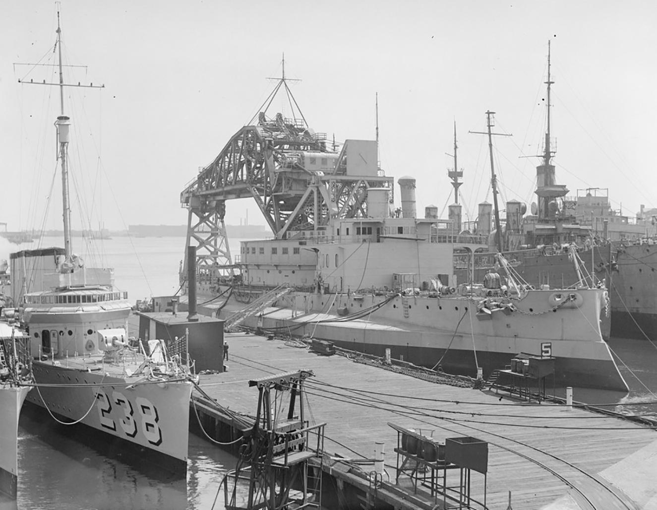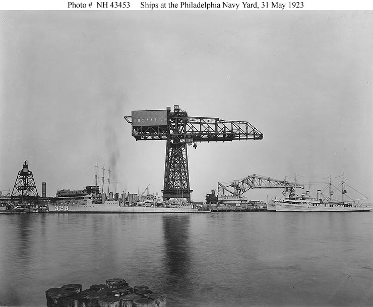 65k | Philadelphia Navy Yard, Pennsylvania view of the Yard's Delaware River waterfront, with the hammerhead crane in center, 31 May 1923. Among the ships visible are: Lamson (DD-328), in left center; Sandpiper (AM-51) and Teal (AM-23), at right, with the crane ship Kearsarge beyond; Destroyers Preston (DD-327), Coghlan (DD-326) and Sharkey (DD-281), partially visible at left. Dobbin (AD-3) is fitting out on the opposite side of the pier, at left. | Official USN photo # NH 43453, from the collections of the Naval Historical Center. | ||||||||||||||||||||||||||||||||||||||||||||||||||||||||||||||||||||||||||||||||||||||||||||||||||||||||||||||||||||||||||||||||||||||||||||||||||||||||||||||||||||||||||||||||||||||||||||||||||||||||||||||||||||||||||||||||||||||||||||||||||||||||||||||||