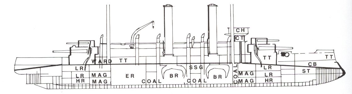 56k | Inboard profile of the Kearsarge (BB-5) as completed. | Photo and text courtesy of U.S. Battleships: An Illustrated Design History by Norman Friedman. | ||||||||||||||||||||||||||||||||||||||||||||||||||||||||||||||||||||||||||||||||||||||||||||||||||||||||||||||||||||||||||||||||||||||||||||||||||||||||||||||||||||||||||||||||||||||||||||||||||||||||||||||||||||||||||||||||||||||||||||||||||||||||||||||||