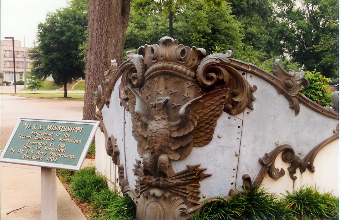 Figurehead of the Battleship Mississippi (BB-23), presented to the State of Mississippi By the U.S. Navy Department December 1909. The marker is located in Jackson, Mississippi. |