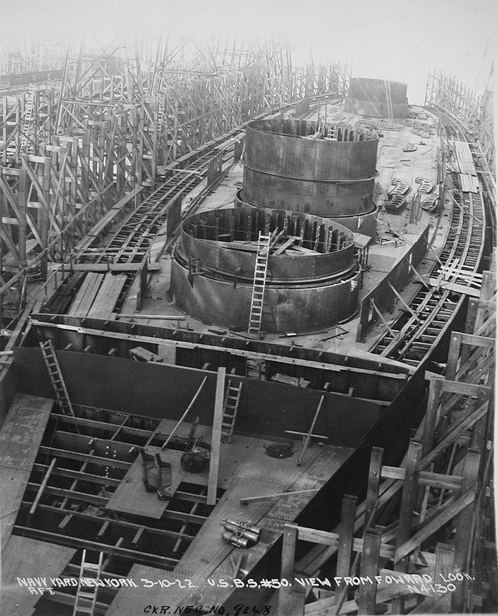 203k | New York Navy Yard, Brooklyn, New York, 10 March 1922. View from forward of the Indiana (BB-50) looking aft. | Photo # 19-N-4130 from the National Archives & Record Administration (NARA),Record Group (RG-19-N, Box 3). Courtesy of Dan Treadwell. | |