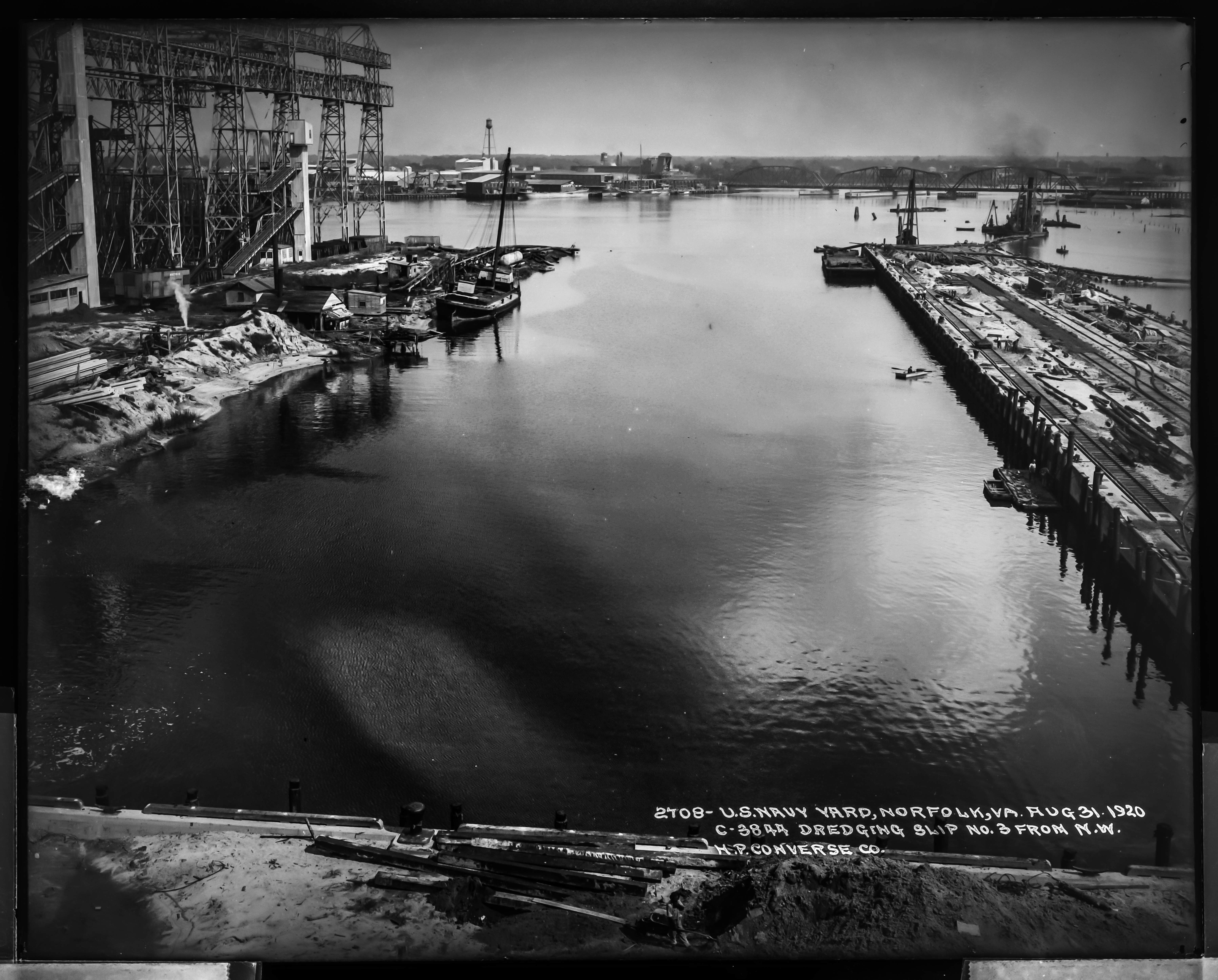 2.12k | U.S. Navy Yard, Norfolk, Va.. C-3844. Dredging Slip No. 3 from NW. H.P. Converse Co., 31 August 1920. | National Archives Identifier: 52559621 Local Identifier 181-V-2708. Photo courtesy of catalog.archives.gov via Daniel Hacker. | |