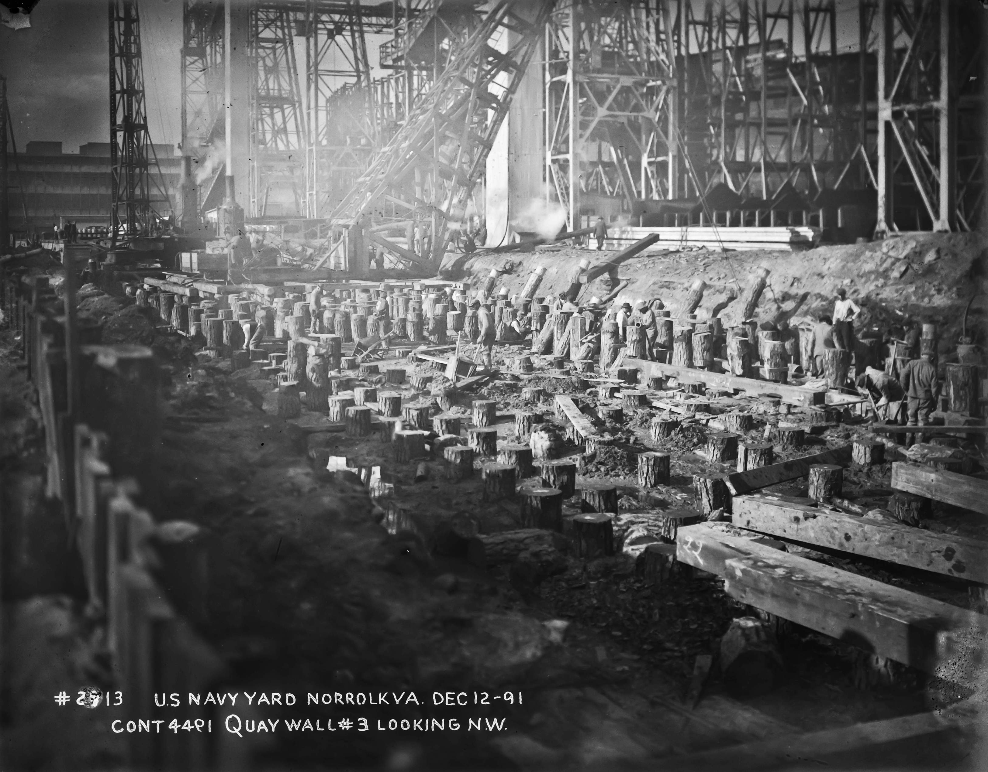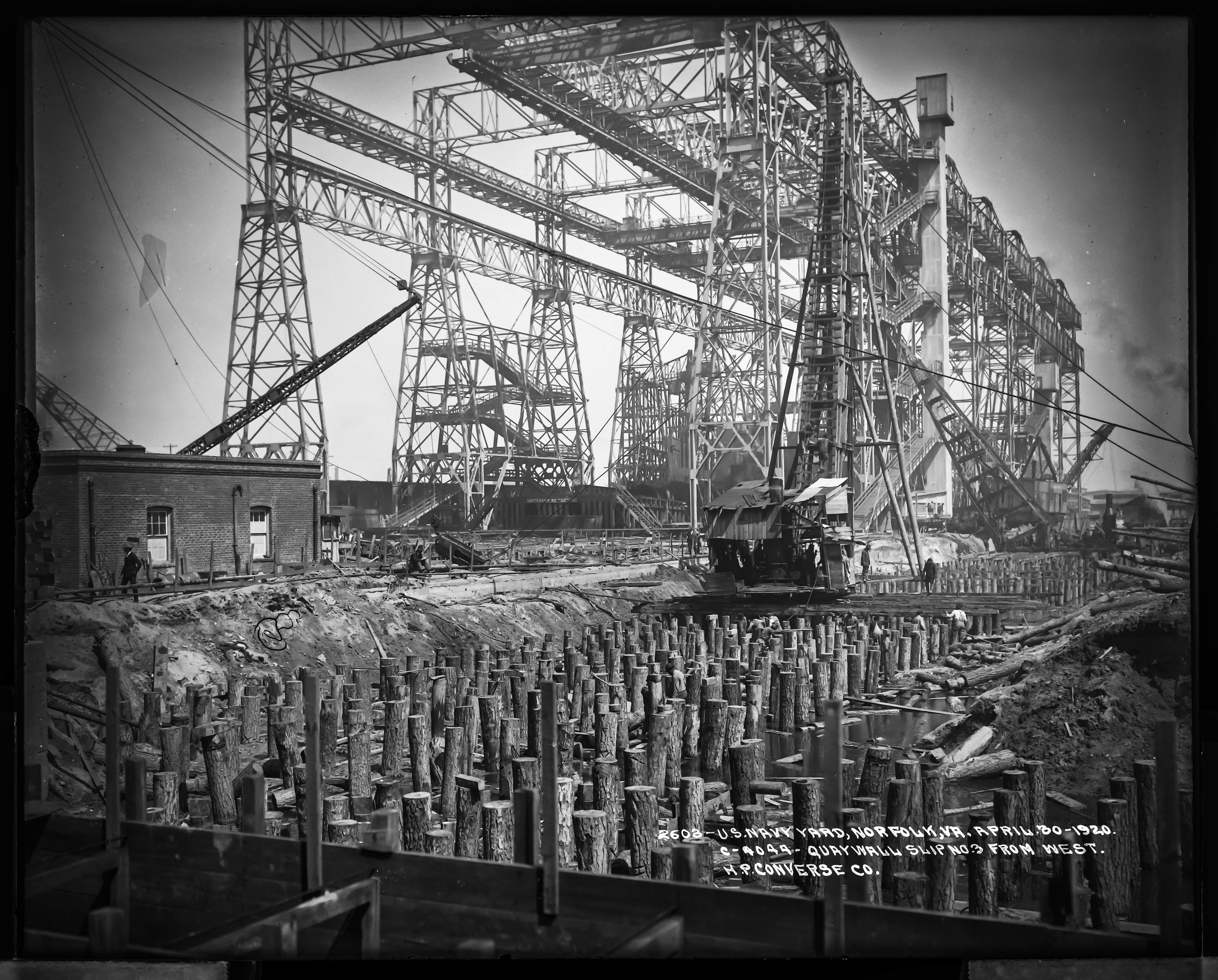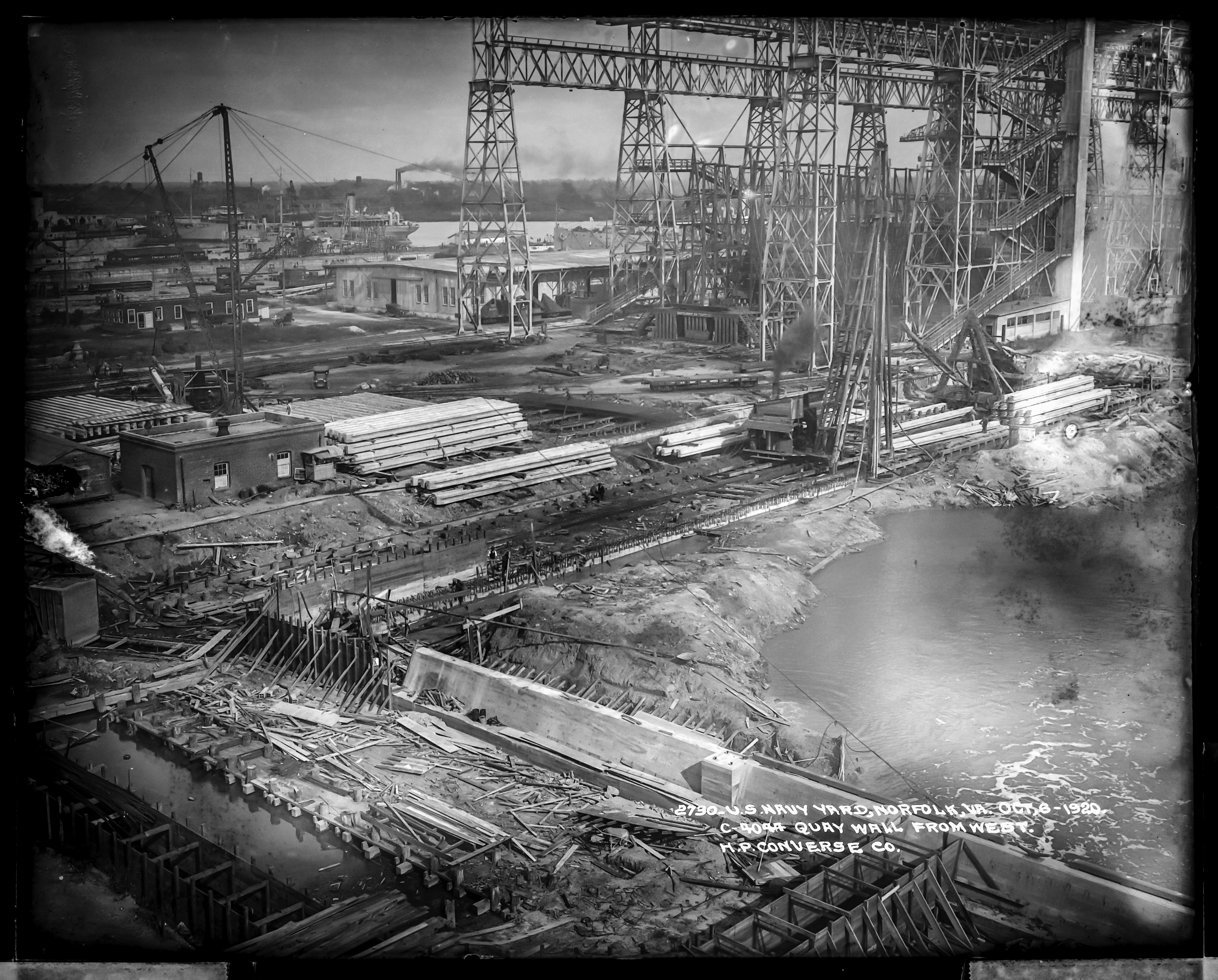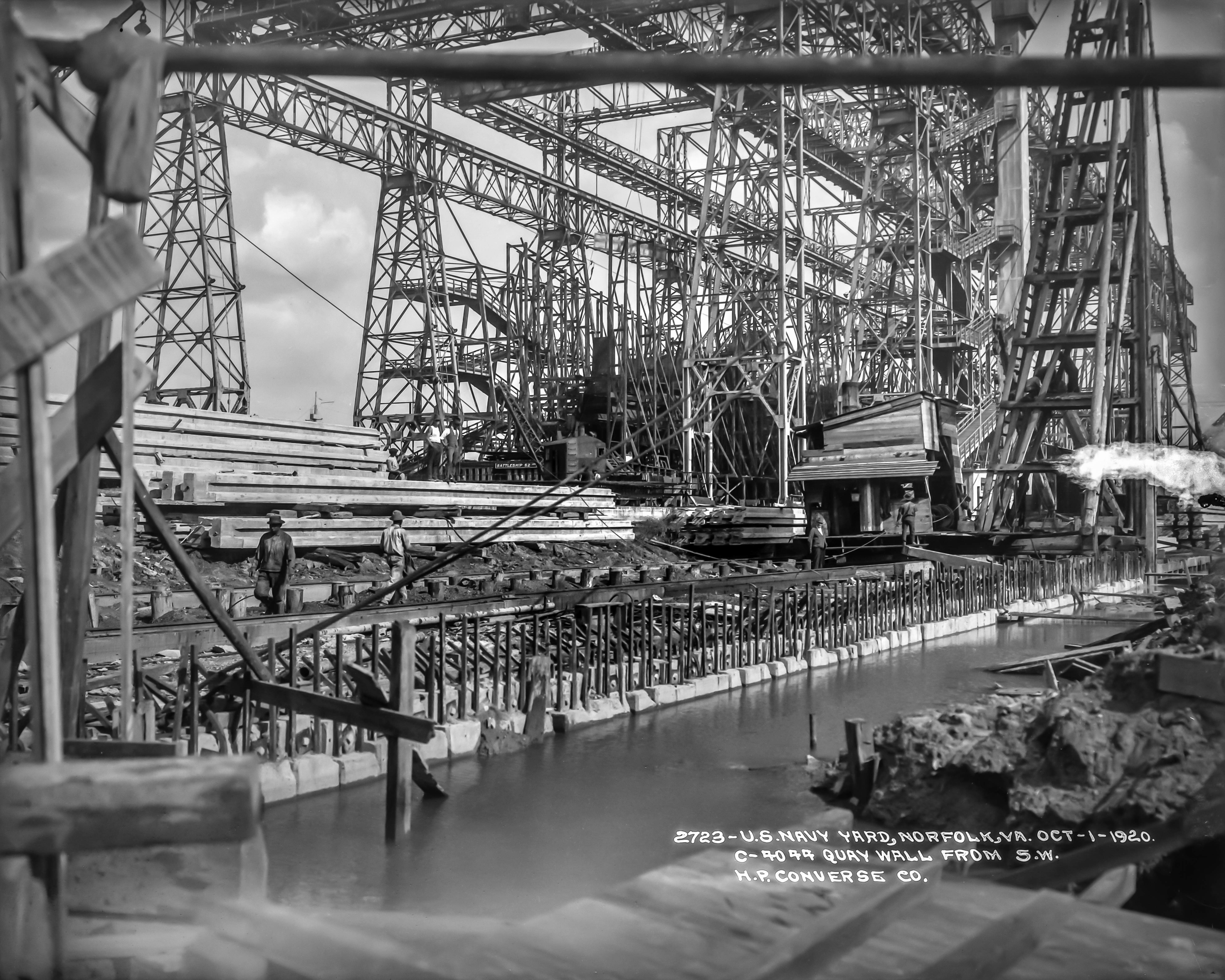 3.12k | U.S. Navy Yard, Norfolk, Va., Quay wall from west, H.P. Converse Co., Cont. #4044, 6 October 1920. | National Archives Identifier: 52559665 Local Identifier 181-V-2730. Photo courtesy of catalog.archives.gov via Daniel Hacker. | |