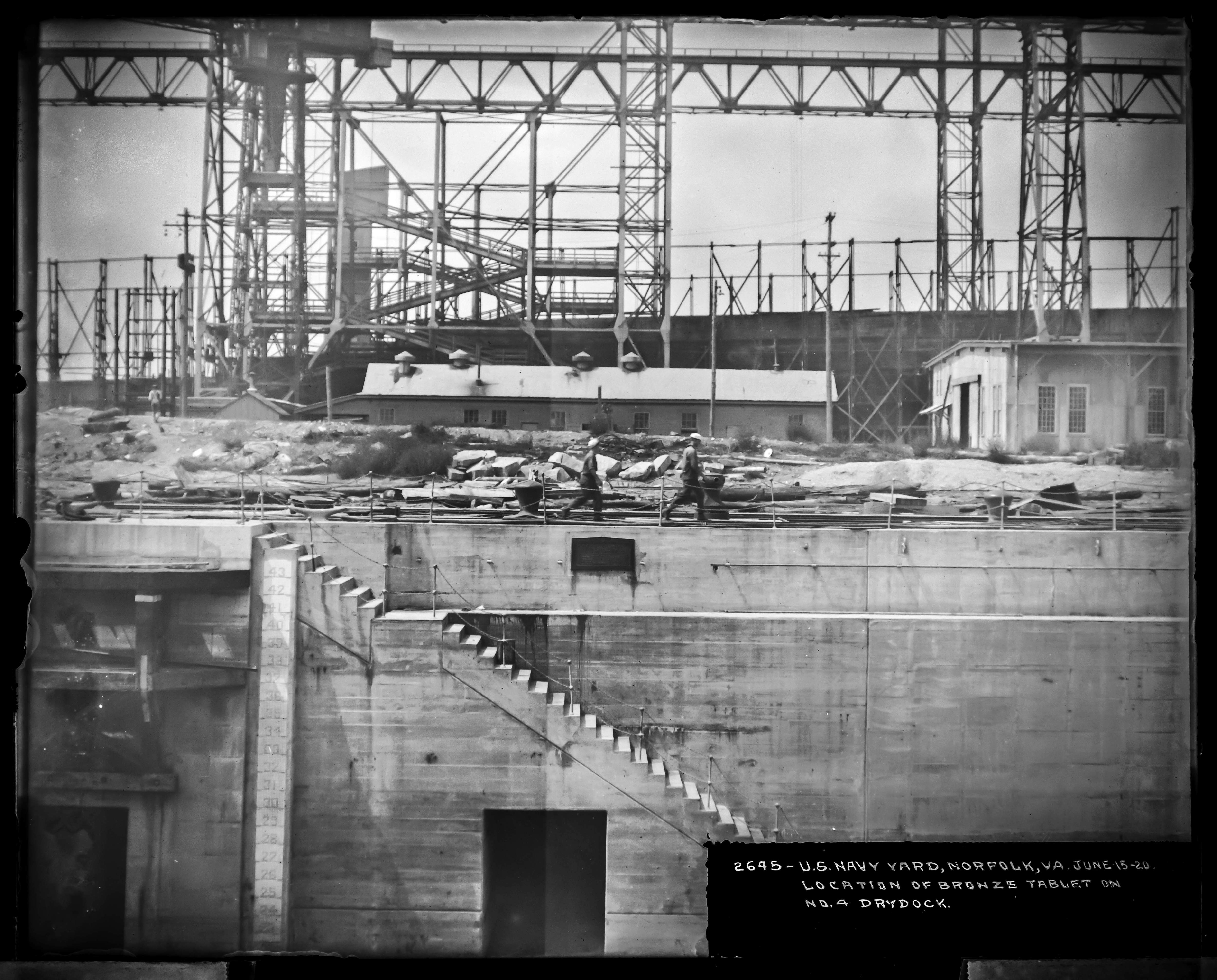 1.45k | U.S. Navy Yard, Norfolk, Va., location of bronze tablet on No.4 dry dock, 15 June 1920. | National Archives Identifier: 52559495 Local Identifier 181-V-2645. Photo courtesy of catalog.archives.gov via Daniel Hacker. | |