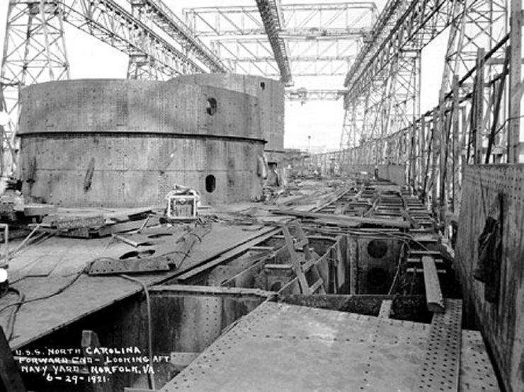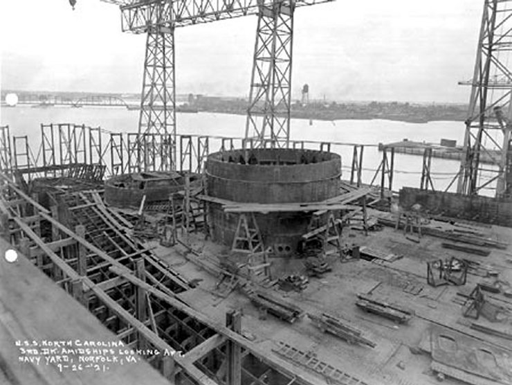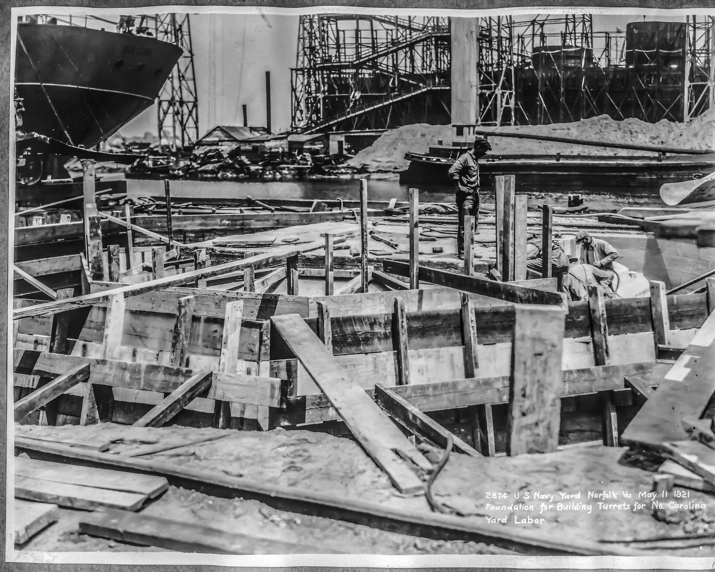 719k | U.S. Navy Yard, Norfolk, Va., Foundation for building turrets for North Carolina (BB-52) yard labor, 11 May 1921. | National Archives Identifier: 52559921 Local Identifier 181-V-2874. Photo courtesy of catalog.archives.gov via Daniel Hacker. | |