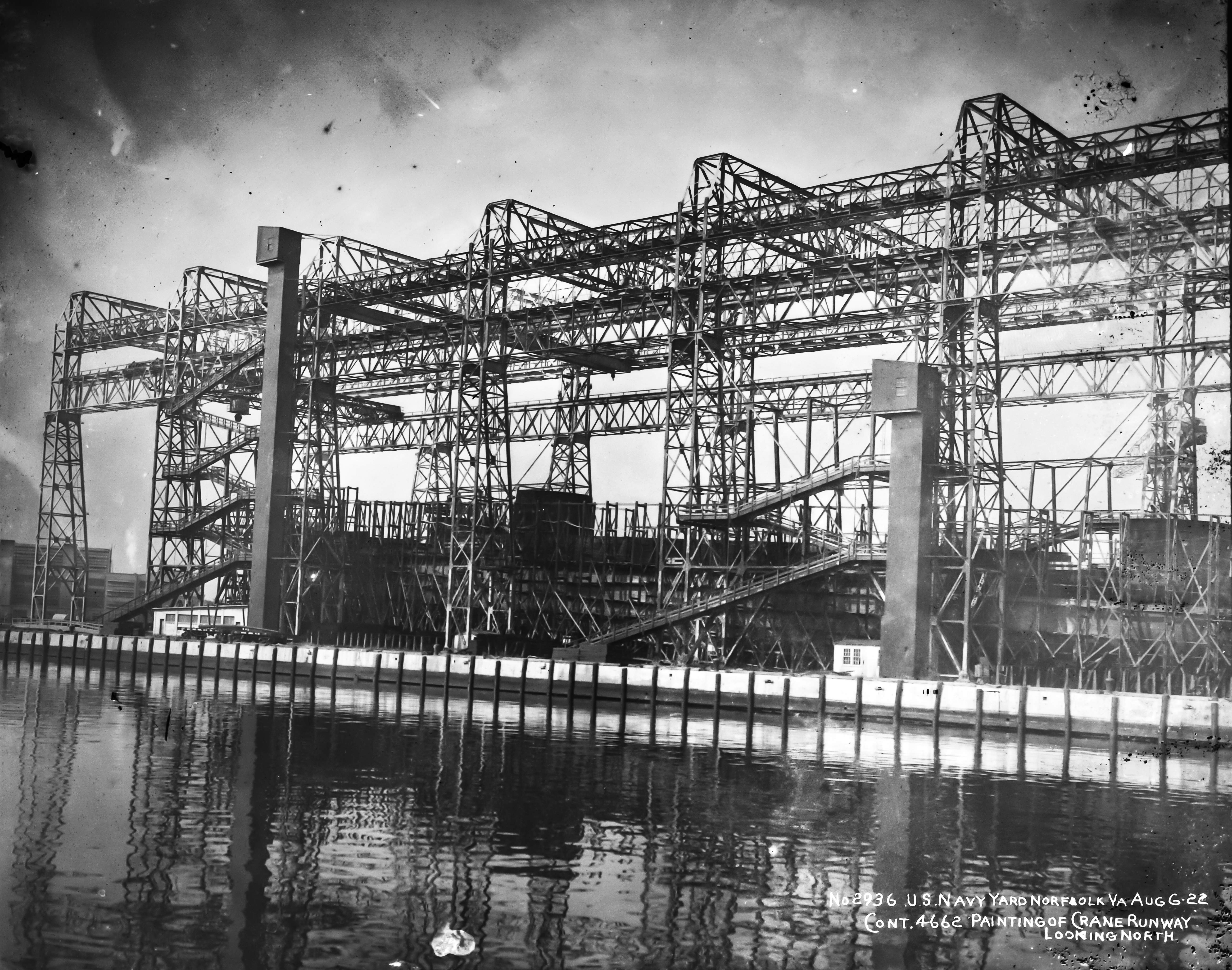2.14k | U.S. Navy Yard, Norfolk, Va., Painting of Crane Runway, Looking north, Cont. #4662, 6 August 1922. | National Archives Identifier: 52559997 Local Identifier 181-V-2936. Photo courtesy of catalog.archives.gov via Daniel Hacker. | |