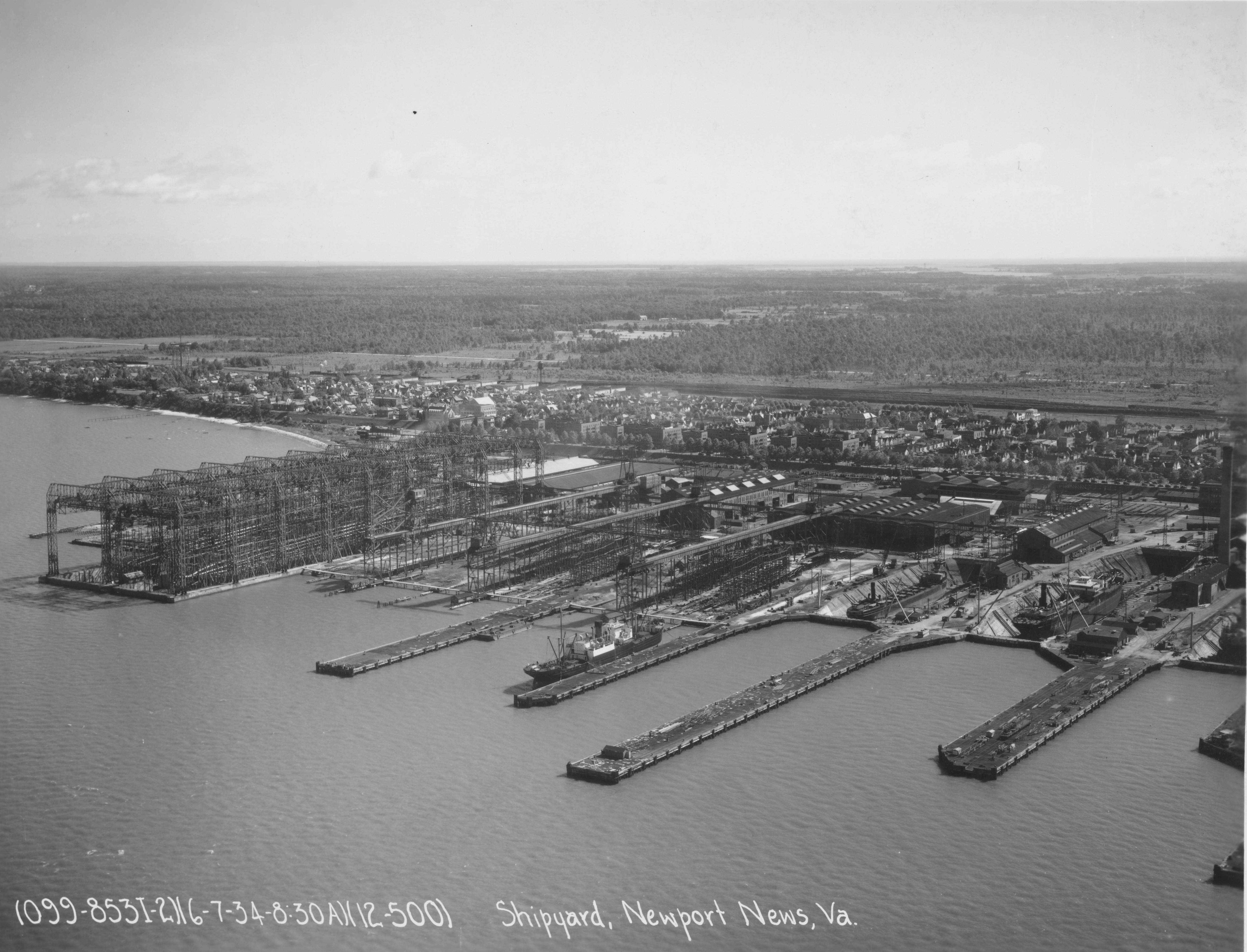 1.37k | Shipyard, Newport News, Virginia, 2 July 1934. The ways on the left was where the Iowa (BB-53) was laid down and subsequently scrapped in place. | National Archives Identifier: 68150855 Local Identifier 18-AA-129-26. Photo courtesy of catalog.archives.gov | |