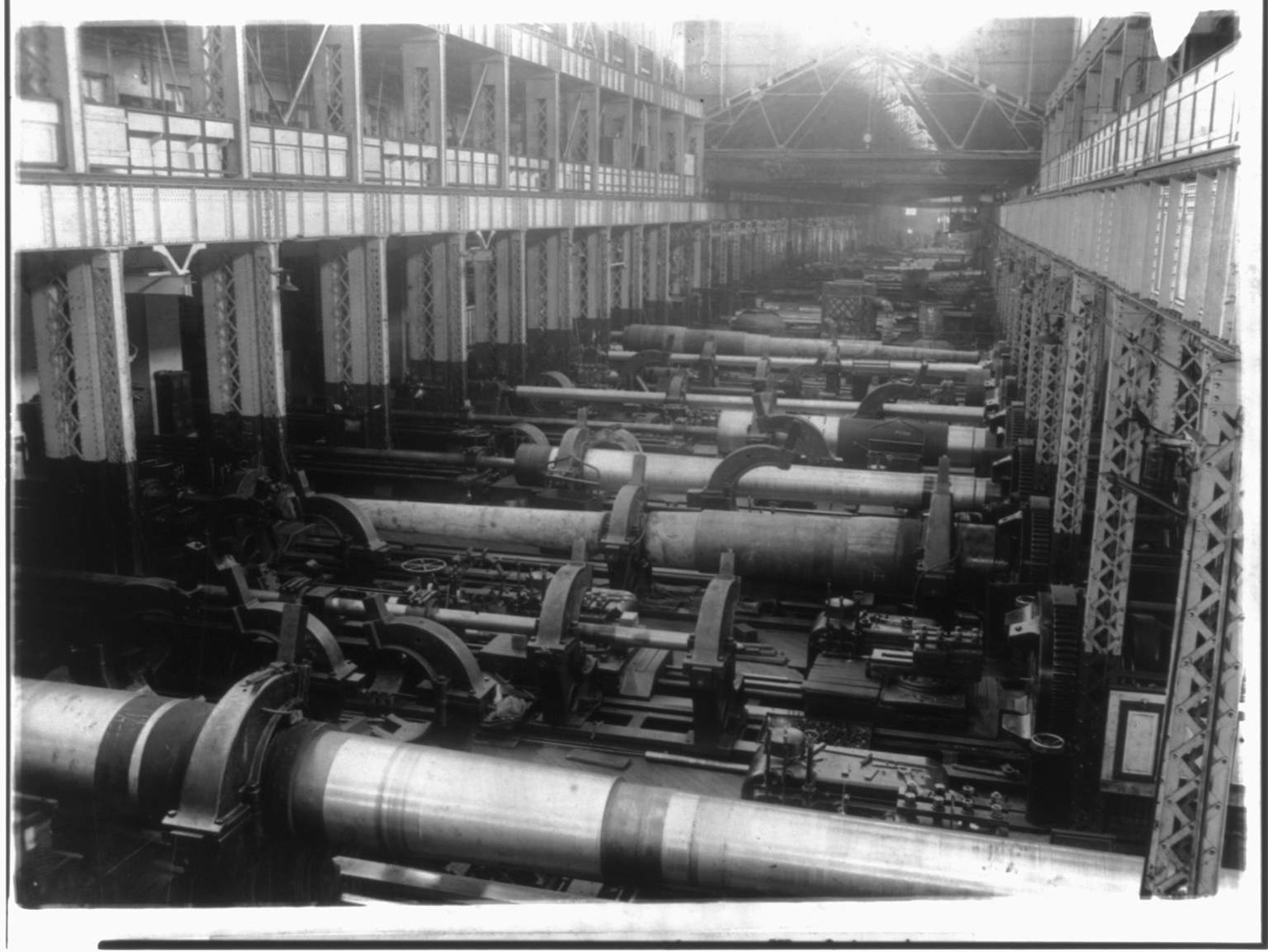 564k | 16-inch, 50 caliber gun under construction. | Source: Library of Congress Prints and Photographs Division, courtesy of Tommy Trampp. | |