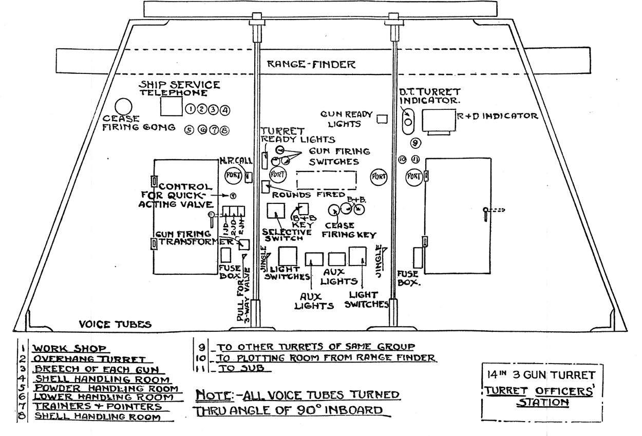 ![]() | 136k | 14-Inch 3-Gun Turret, Turret Officer's Station. | USN photo and text courtesy of Pieter Bakels. | |