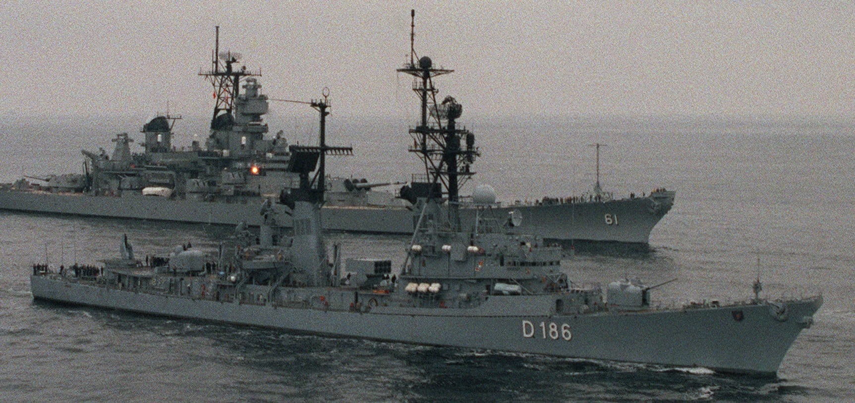 ![]() | 442k | On 20 September 1969, Lutjens-class guided-missile destroyer FGS Molders (D186) was commissioned, Kapitän zur See Gunther Fromm commanding. Here seen underway with Iowa (BB-61) during the NATO Exercise "BALTOPS '85" in the Baltic Sea, on 1 October 1985. | Photo courtesy of Deutsches Marinemuseum, Wilhelmshaven, Germany / Battleship Iowa, Pacific Battleship Center via Yu Chu. Photo added 10/02/19. |