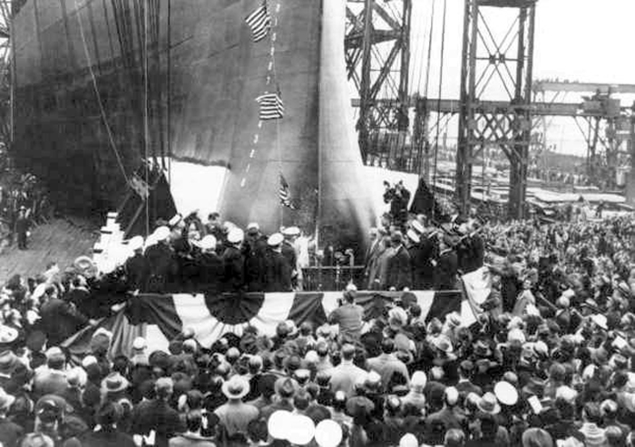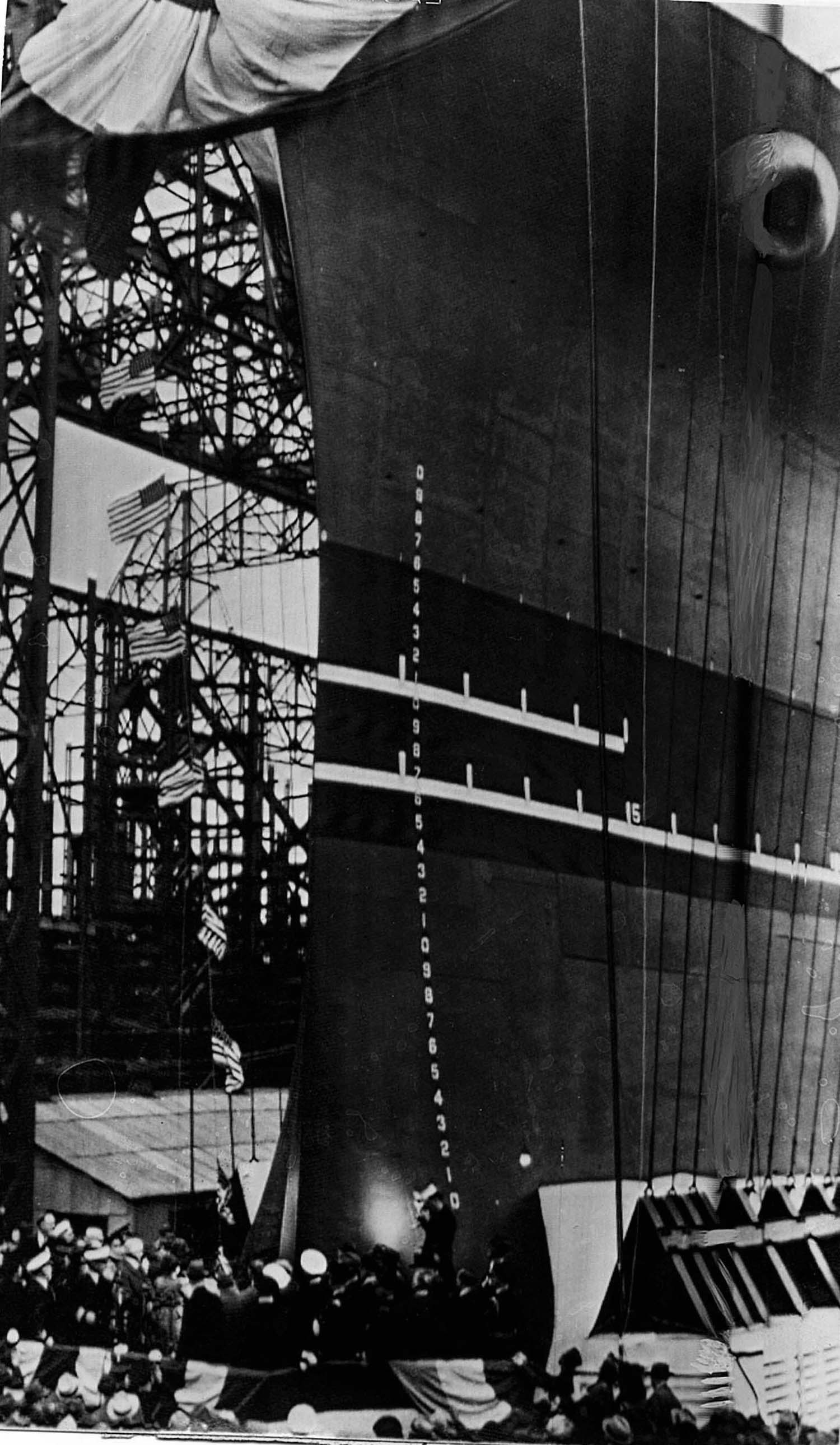324k | The launching ceremony around the moment of Indiana's (BB-58) christening. | Photo courtesy of Dale Hargrave. | |