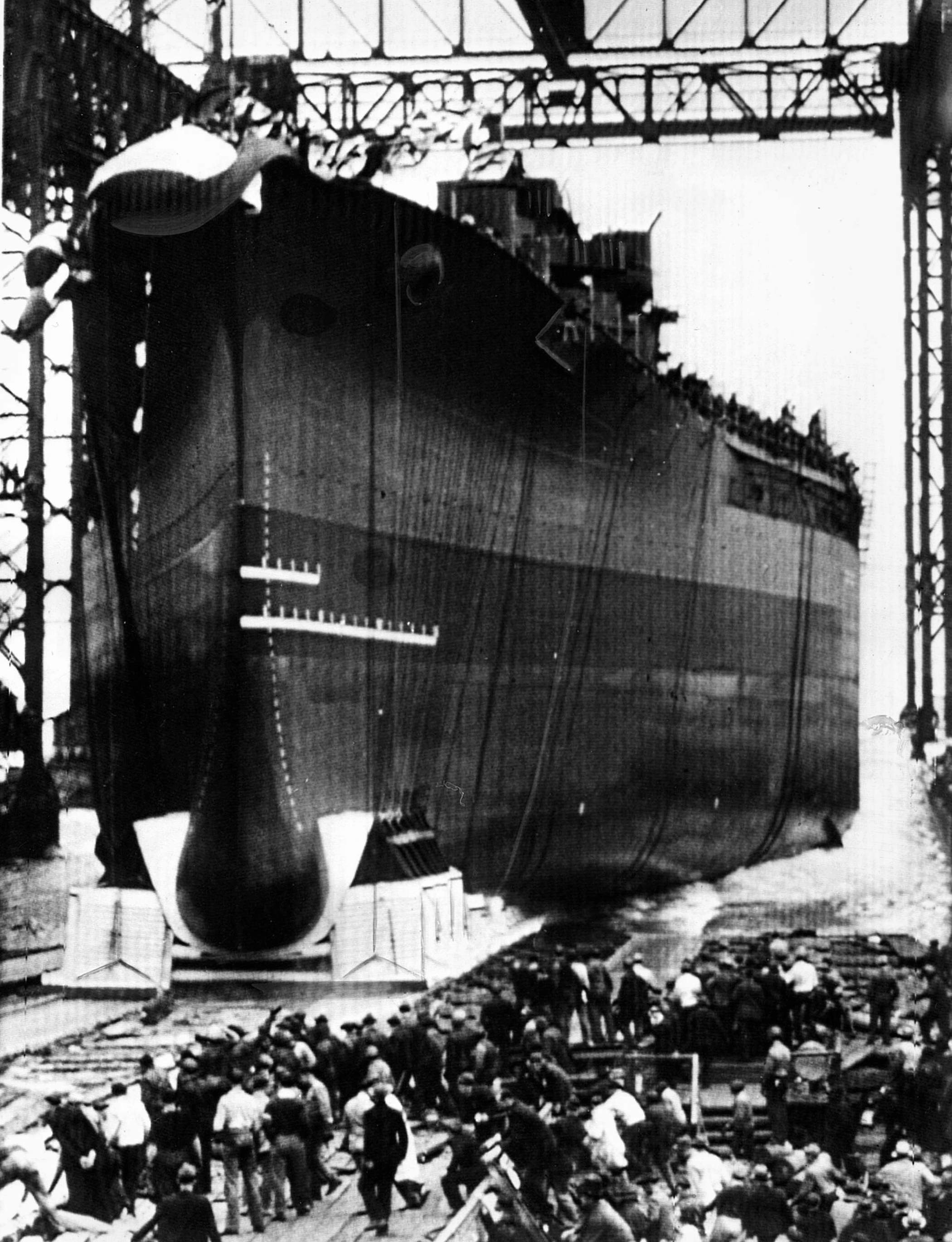 820k | Indiana (BB-58) sliding down the ways at Newport News Ship Building, Newport News, VA. 21 November 1941. | Official USN photo courtesy of Pieter Bakels. | |