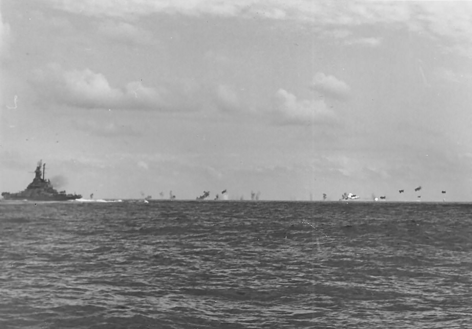 2.17k | The Indiana (BB-58) taken during attack missions on Japanese bases in the Marshall islands. | USN photo courtesy of Pieter Bakels. | |