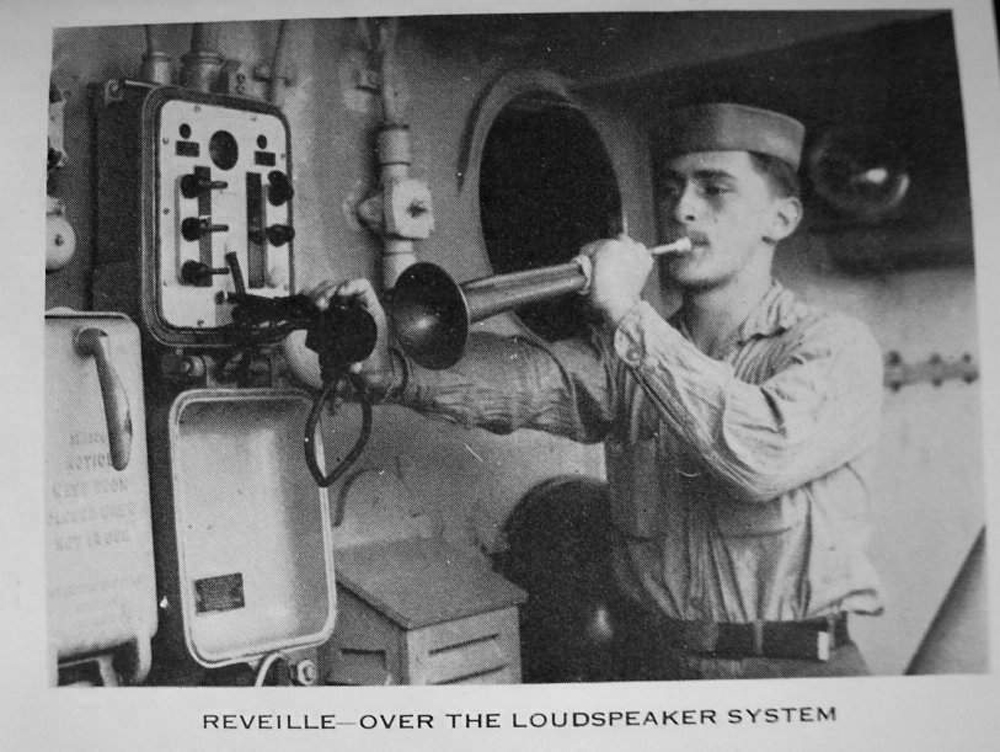 ![]() | 383k | Reveille is sounded on the Indiana (BB-58). | Photo courtesy of Dave Reed. | |