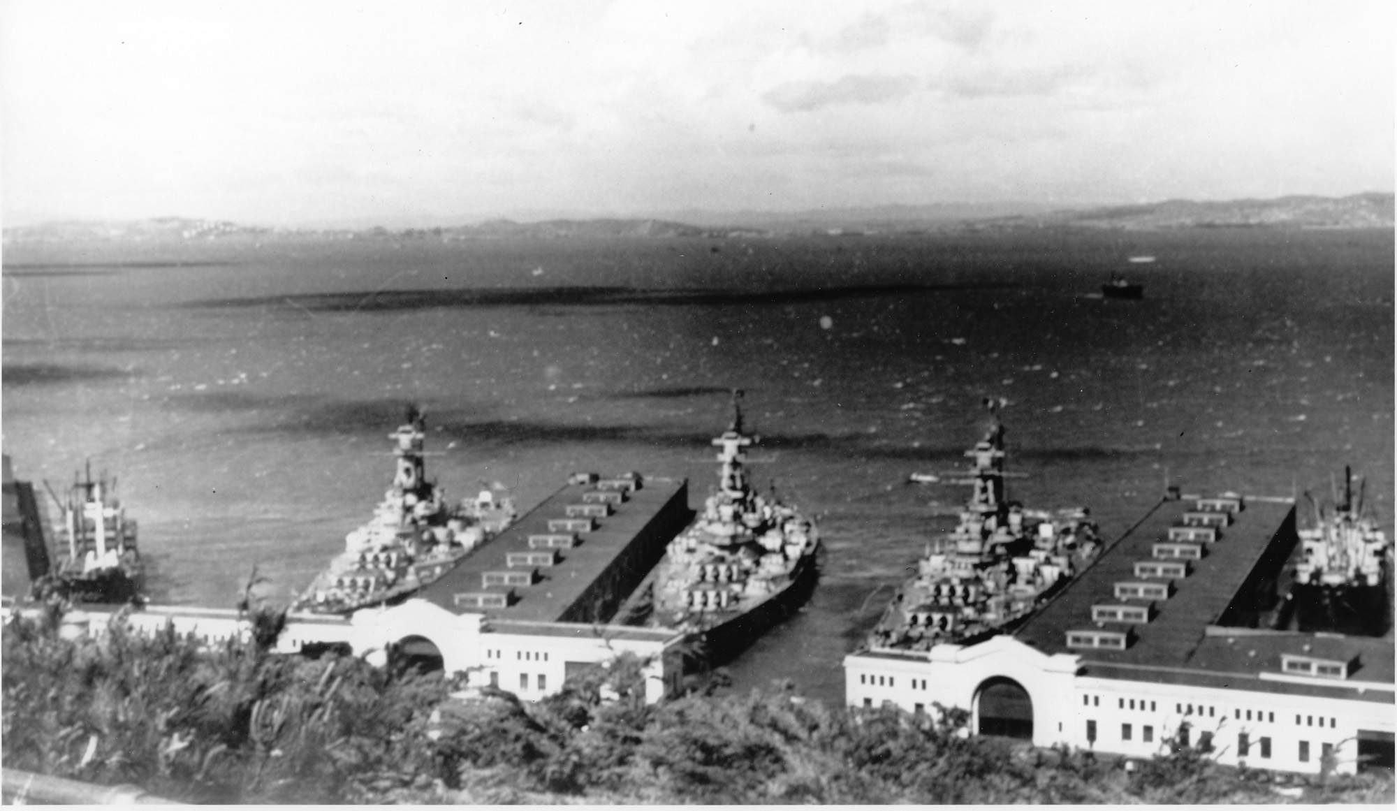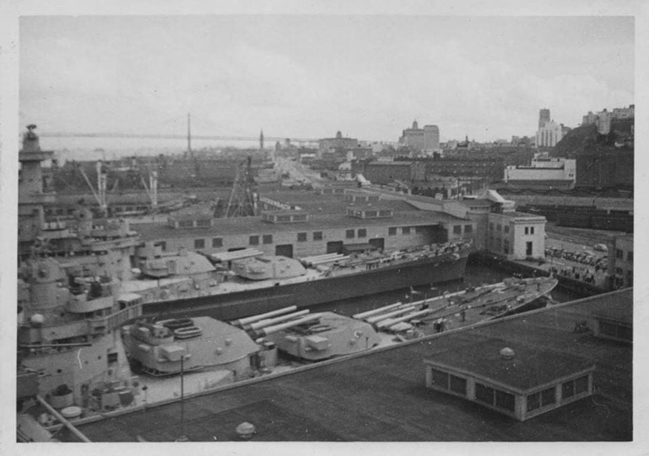 158k | 17 March 1946. The Indiana (BB-58), Massachusetts (BB-59)& Alabama (BB-60) tied up at the Embarcadero, San Francisco. | USN photograph courtesy of Pieter Bakels. Text courtesy of |