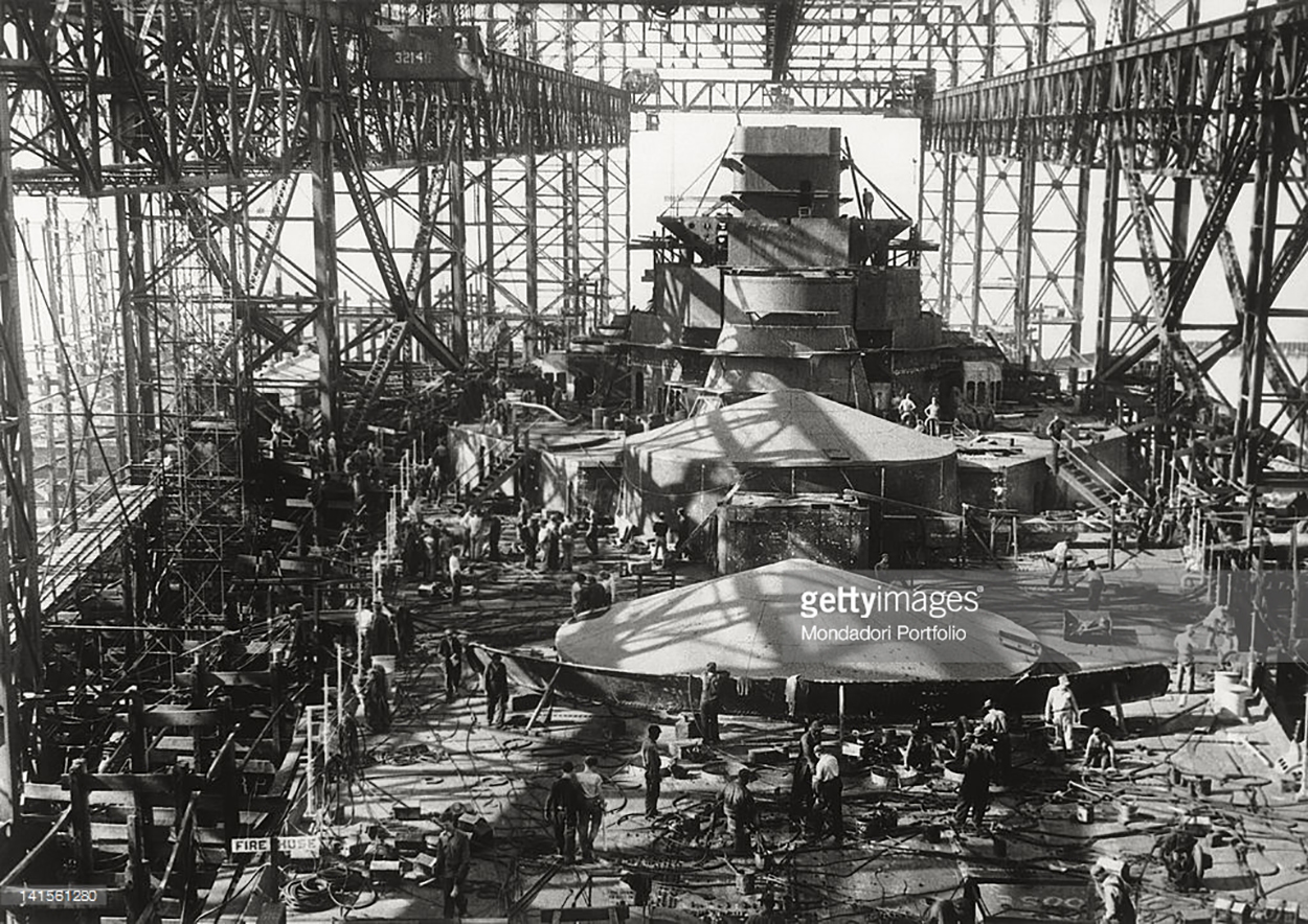 857k | Indiana (BB-58) under construction in the shipyard. | Photo Mondadori Portfolio via Getty Images courtesy of gettyimages.com. | |