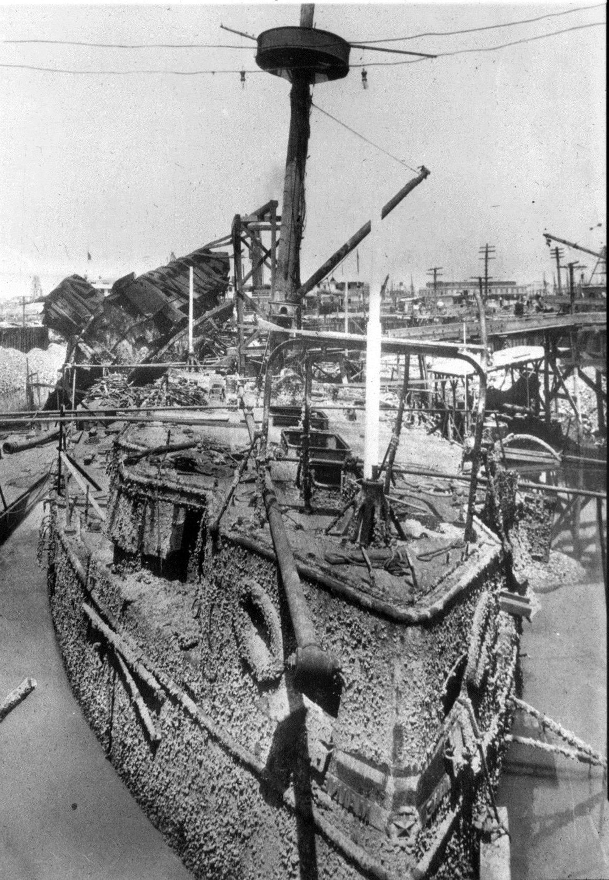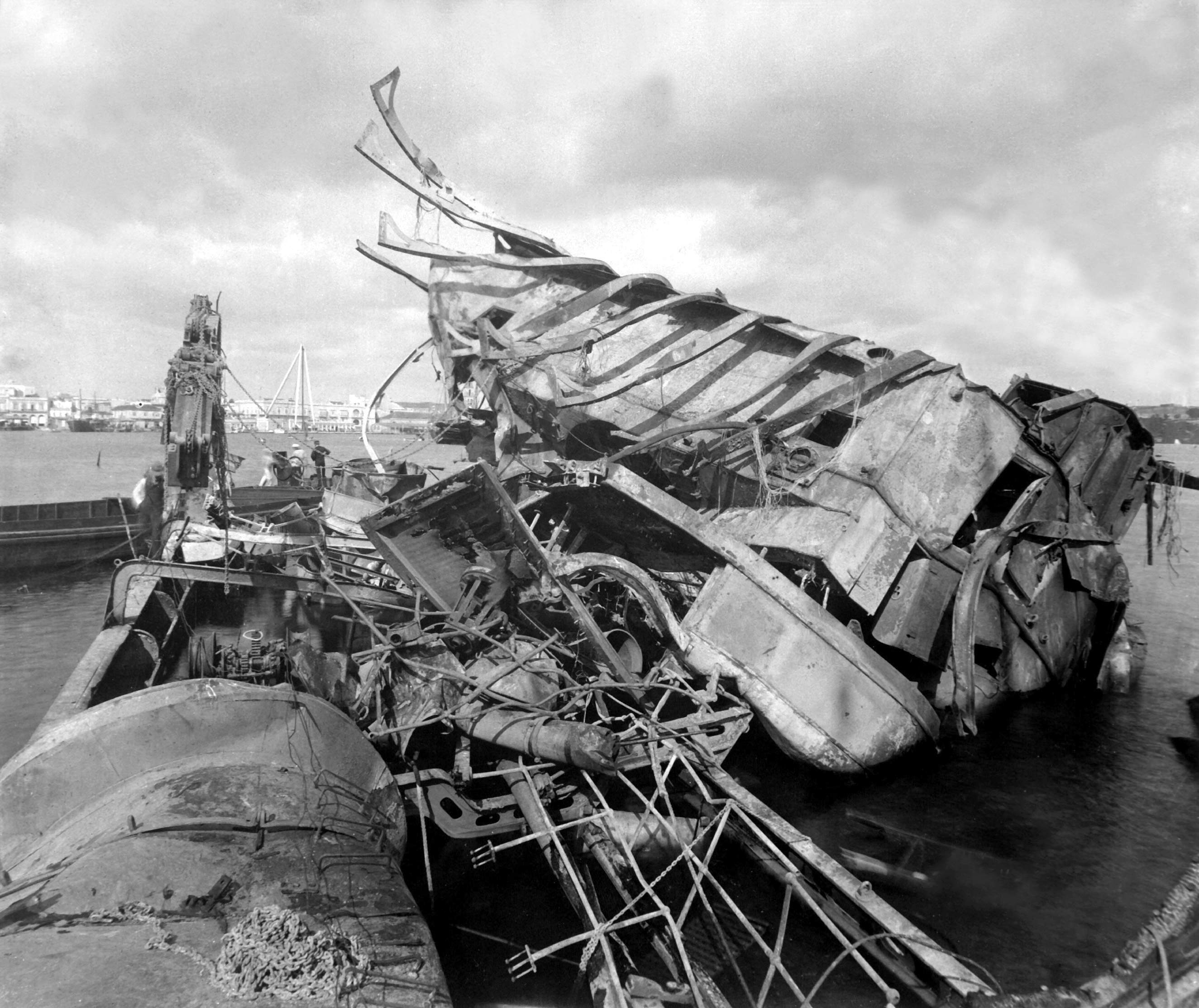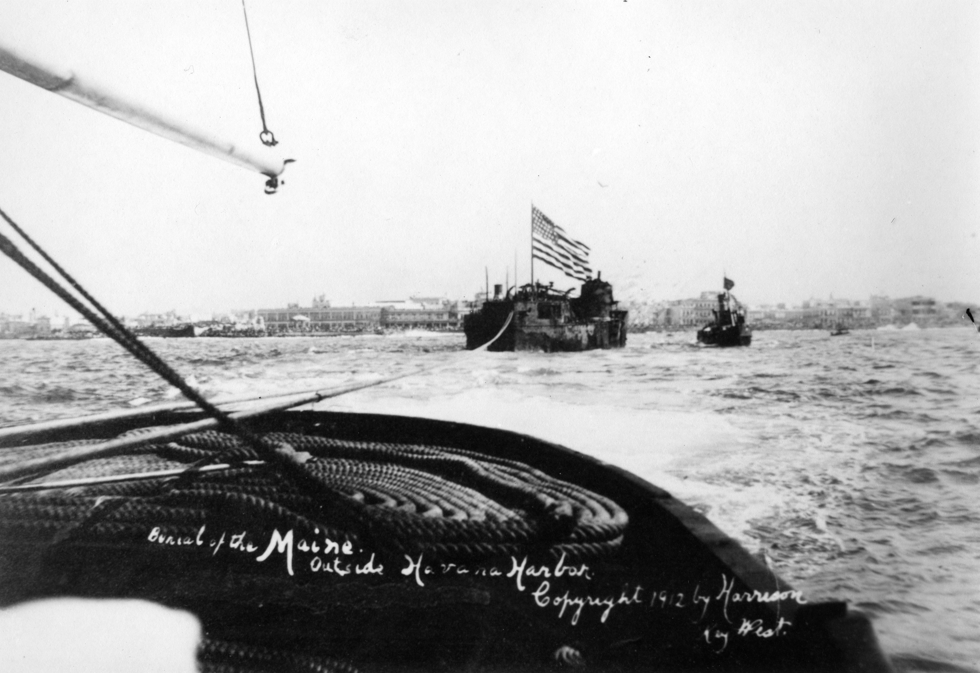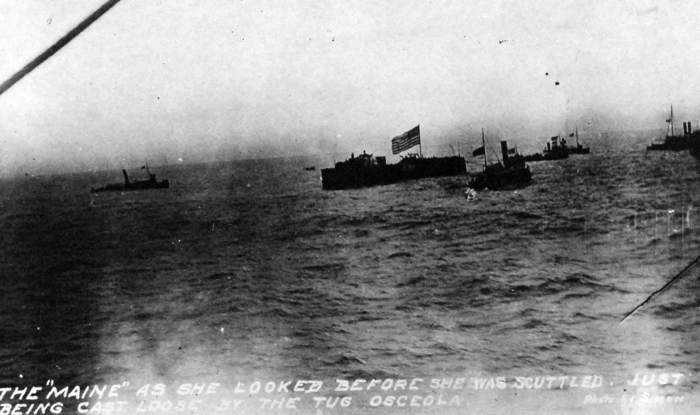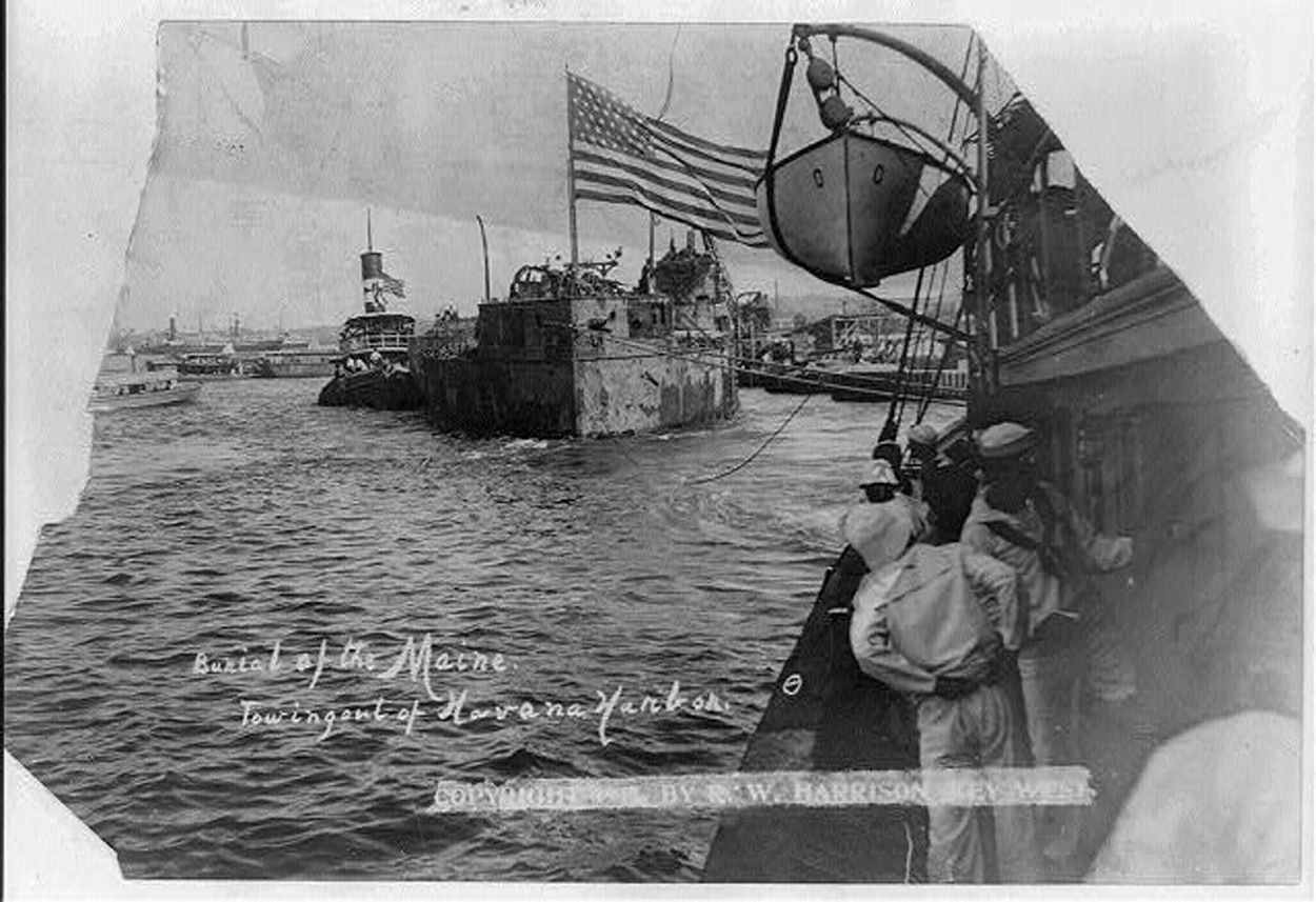 4.68k | Wreck of Maine under tow prior to being sunk off the coast of Cuba. | USN photo NHF-064 courtesy of history.navy.mil | |