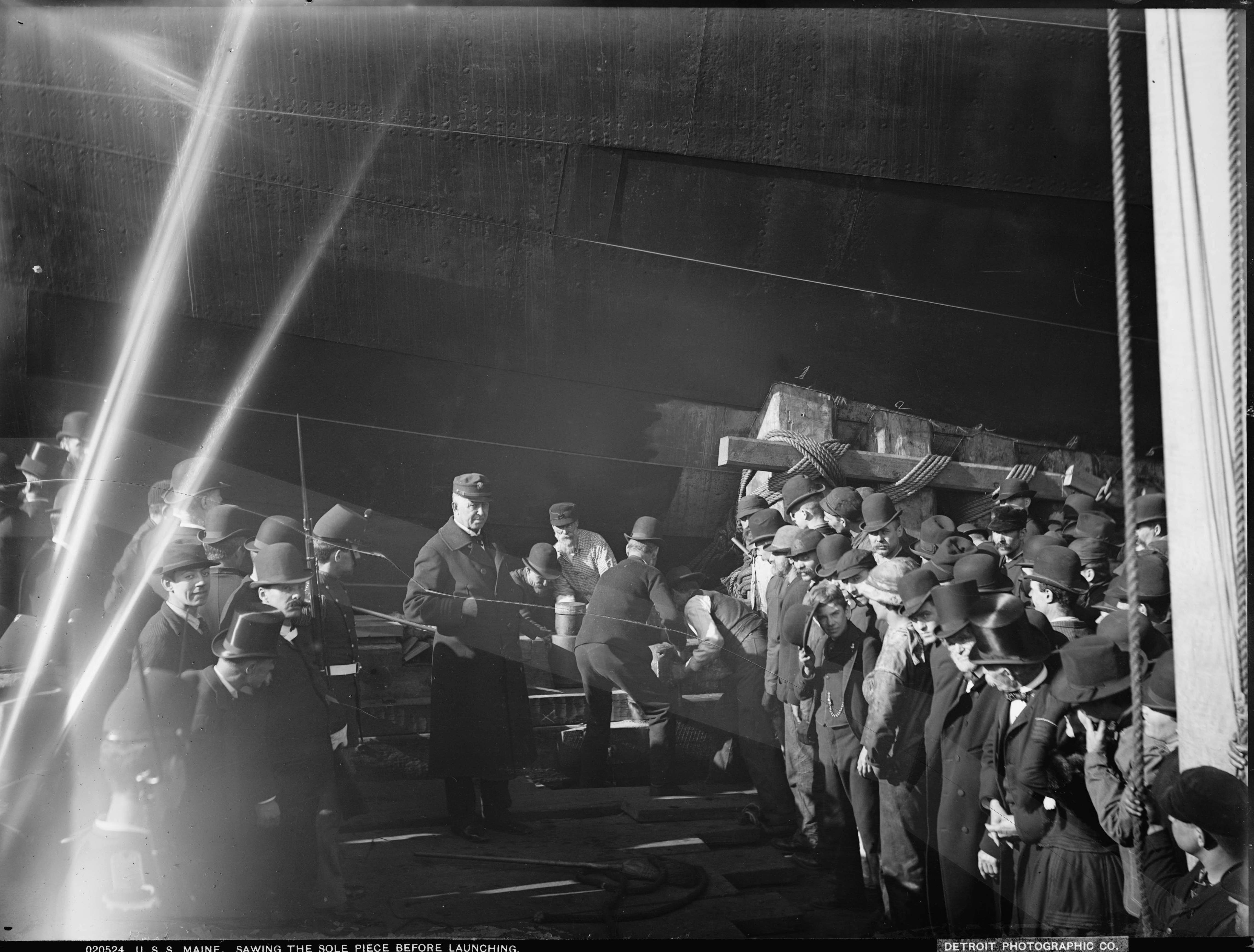 ![]() | 370k | Maine wedging up before launching. | Photo by Edward H. Hart, Detroit Publishing Company Photo # 4a14345r from lcweb2.loc.gov. | |