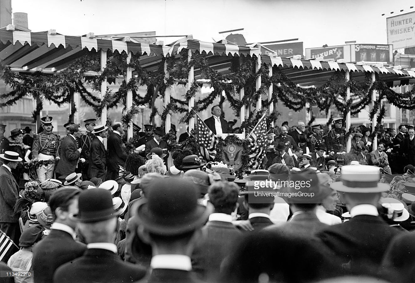 ![]() | 570k | President William Taft at unveiling ceremony for the memorial at entrance to Central Park, New York, to the battleship Maine, May 1913. | Photo by Universal History Archive/Getty Image, courtesy of gettyimages.com. | |