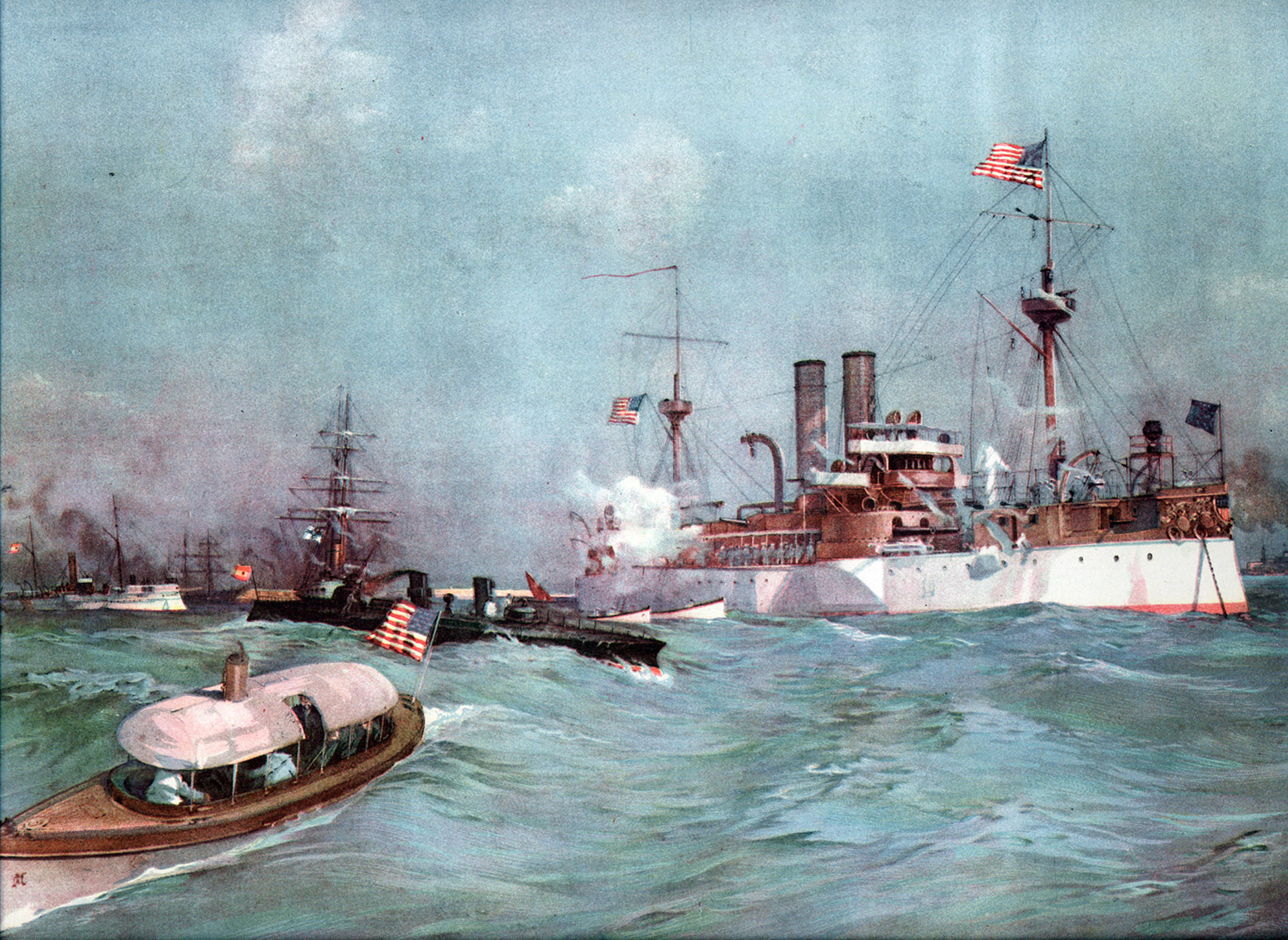 ![]() maine32s | 646k | The Maine Saluting the Spanish Flag-Ship on Arriving in the Harbor of Havana. Undated colour lithograph. | Photo courtesy of meisterdrucke.uk | |