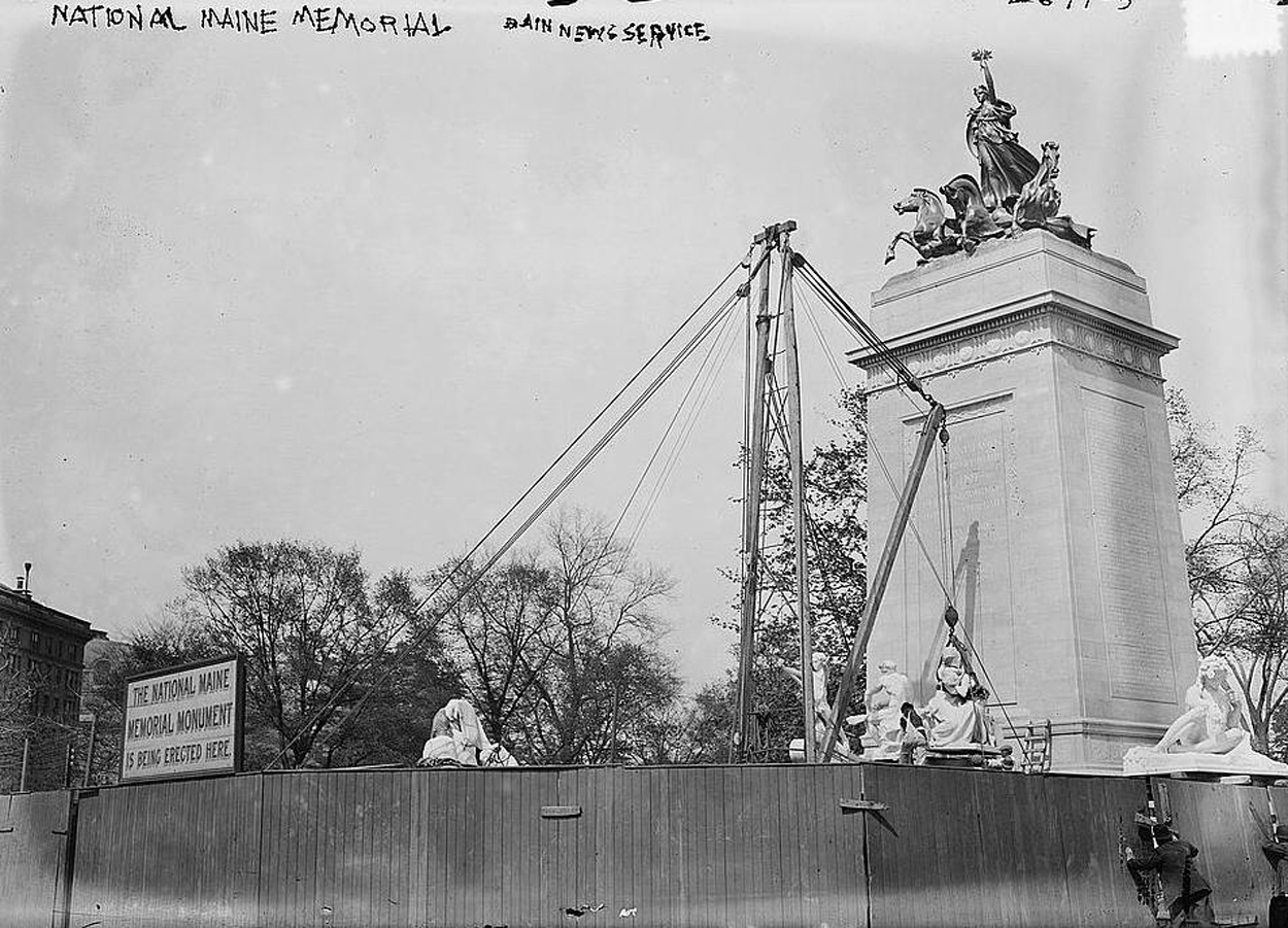 ![]() | 662k | Construction of the Maine Memorial circa 1912-1913 at Central Park at New York City. | Source: Library of Congress, Photo No. LC-B2-2671-5 via Mike Green. | |