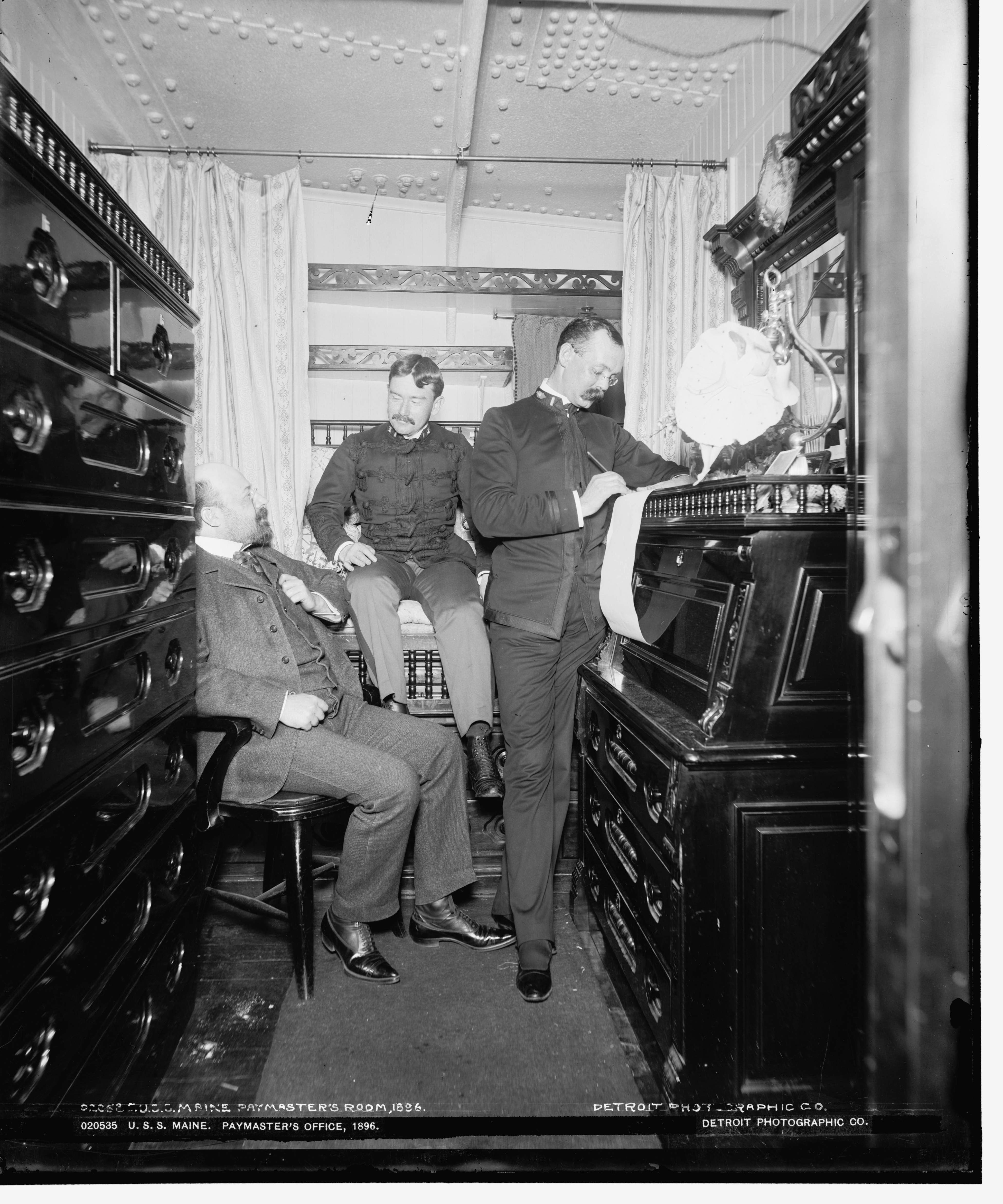 ![]() maine16p | 1.24k | Maine paymaster's room, 1896. | Photo from the Detroit Publishing Co, Edward H. Hart, photographer, via the Library of Congress. Reproduction Number: LC-DIG-det-4a14357 Photo courtesy of loc.gov. |