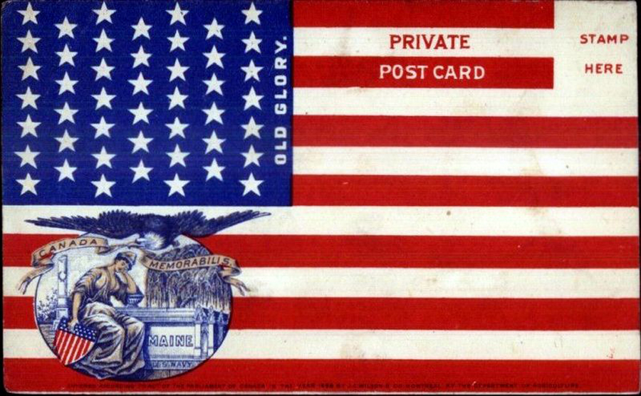 423k | Canada Remembers Sinking of Maine, American Flag c1905, Private Postcard. | Photo courtesy of Tommy Trampp. | |