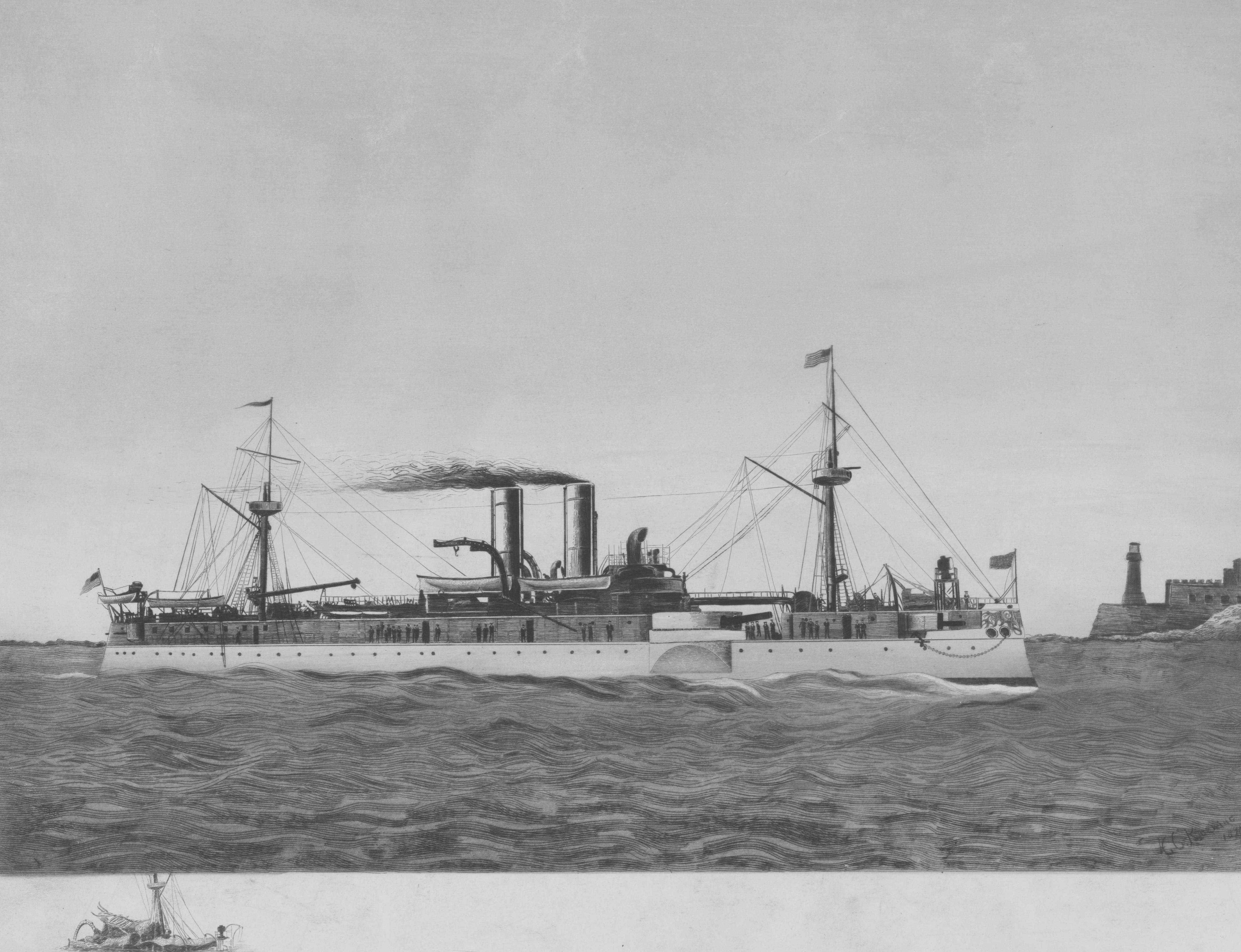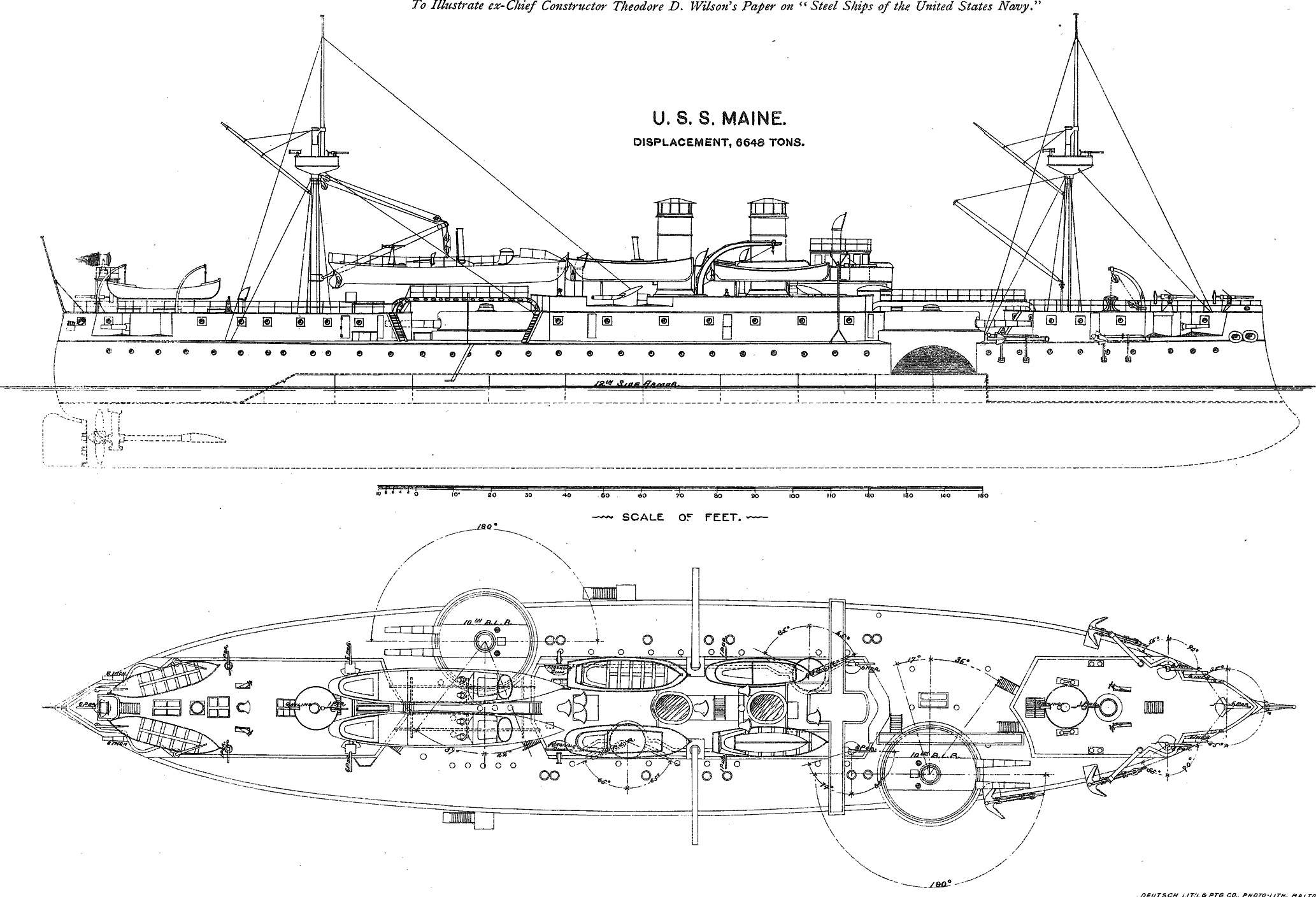 ![]() | 704k | Maine just after launch. | Photo from Illustrated American, 6 December 1890 courtesy of Arnold Putnam. Insert photo # Lot 3000-S-2 from the National Museum of the U.S. Navy via flickr.com. | |