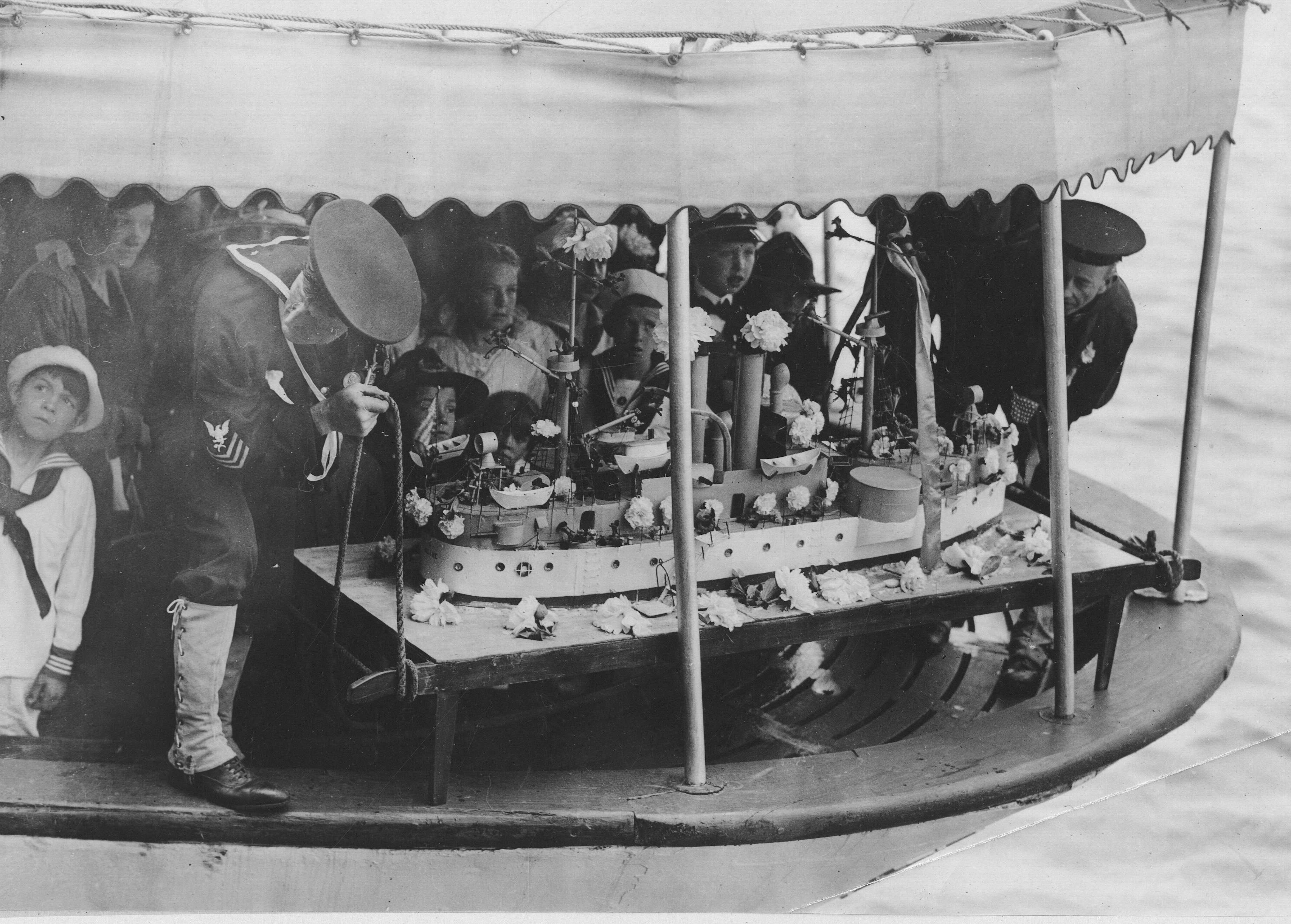 ![]() | 853k | Memorial Day, 1918 - Memorial Day ceremonies. About to launch model of Maine on Delaware River on Memorial Day, which is a yearly custom. Philadelphia, PA. | National Archives Identifier 20809836. Local Identifier: 165-WW-74D-025 Photo courtesy of catalog.archives.gov | |