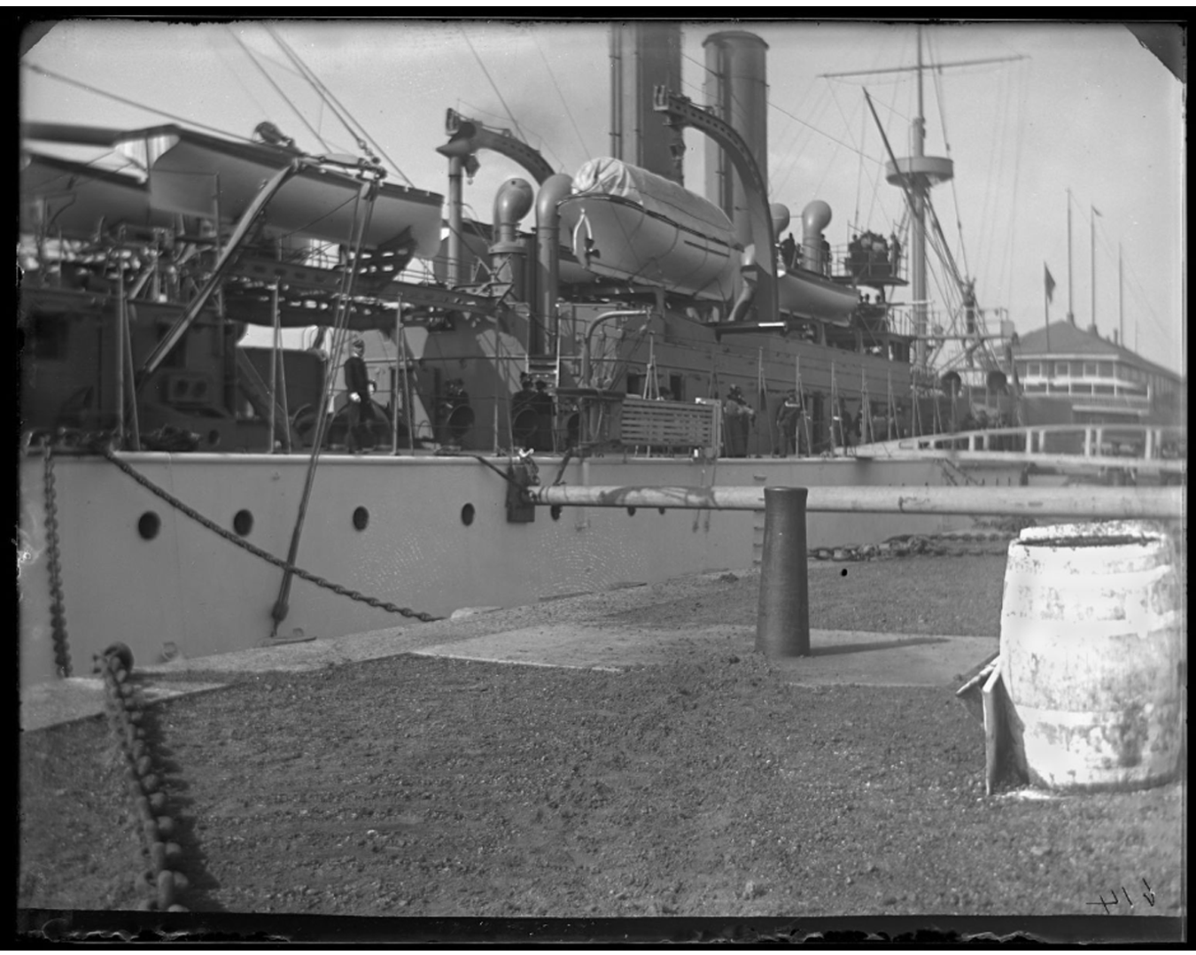 ![]() maine21k | 1.10k | Maine at Cob Dock, Brooklyn Navy Yard, New York City, undated. | Photo courtesy of New York Historical Society via Daniel Hacker. | |
