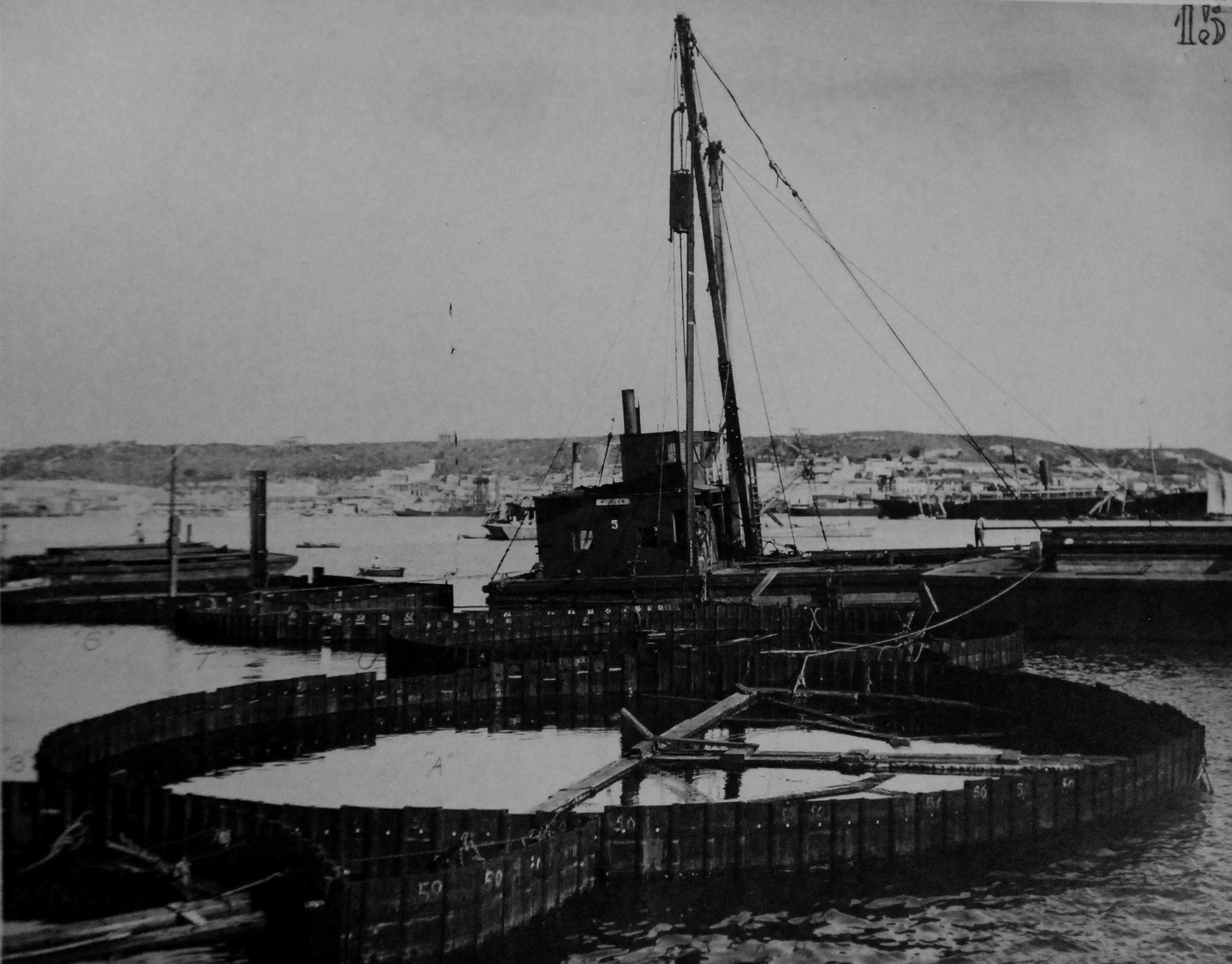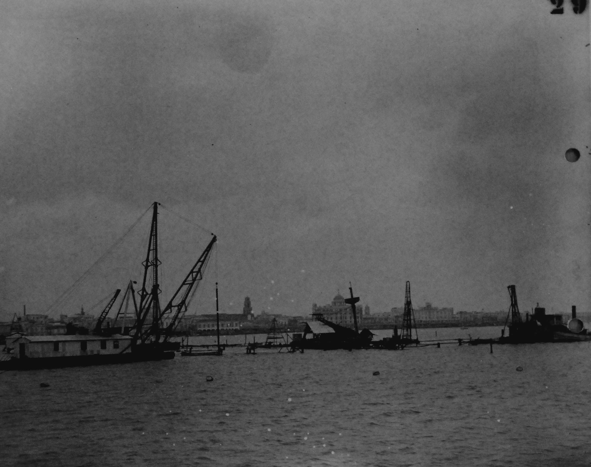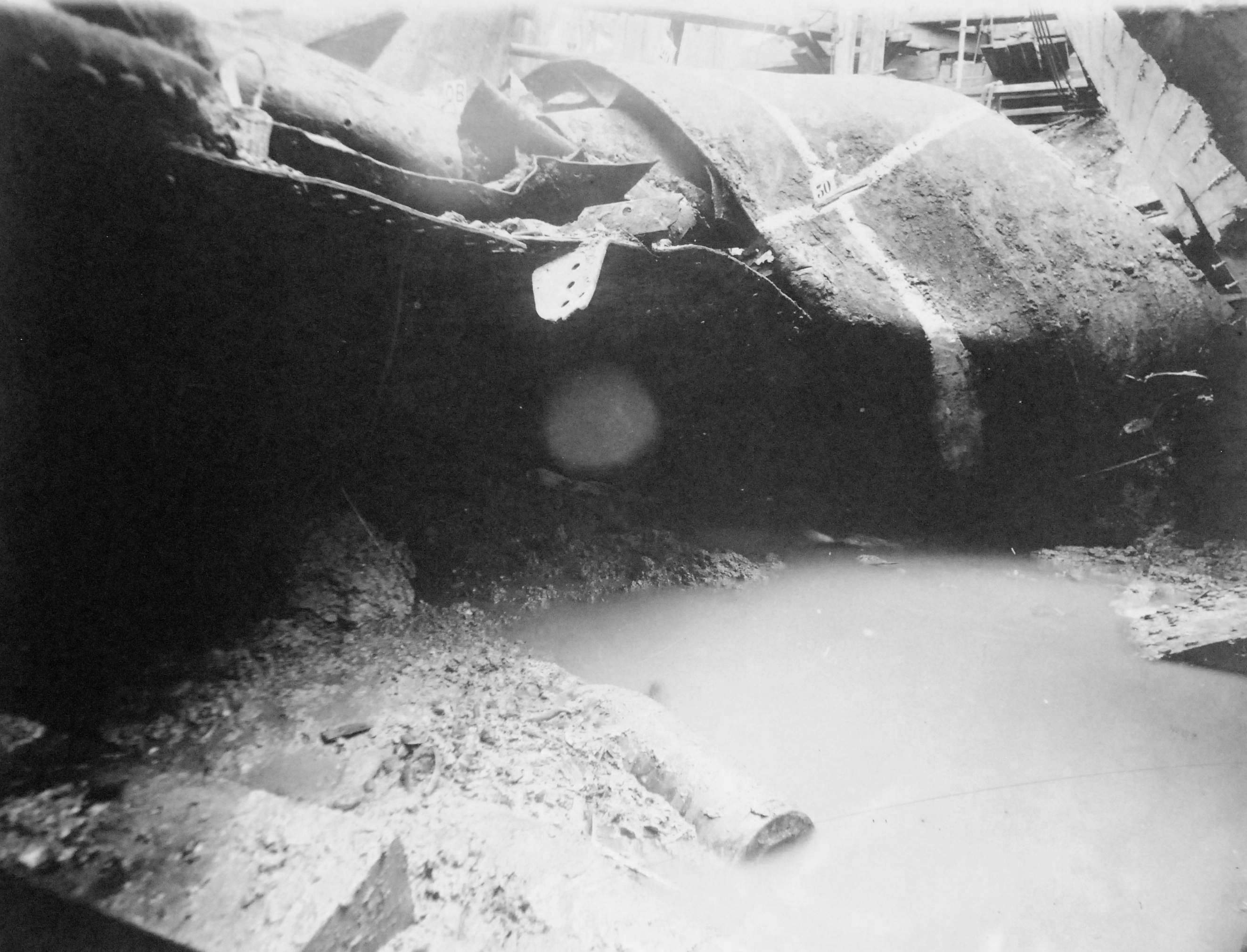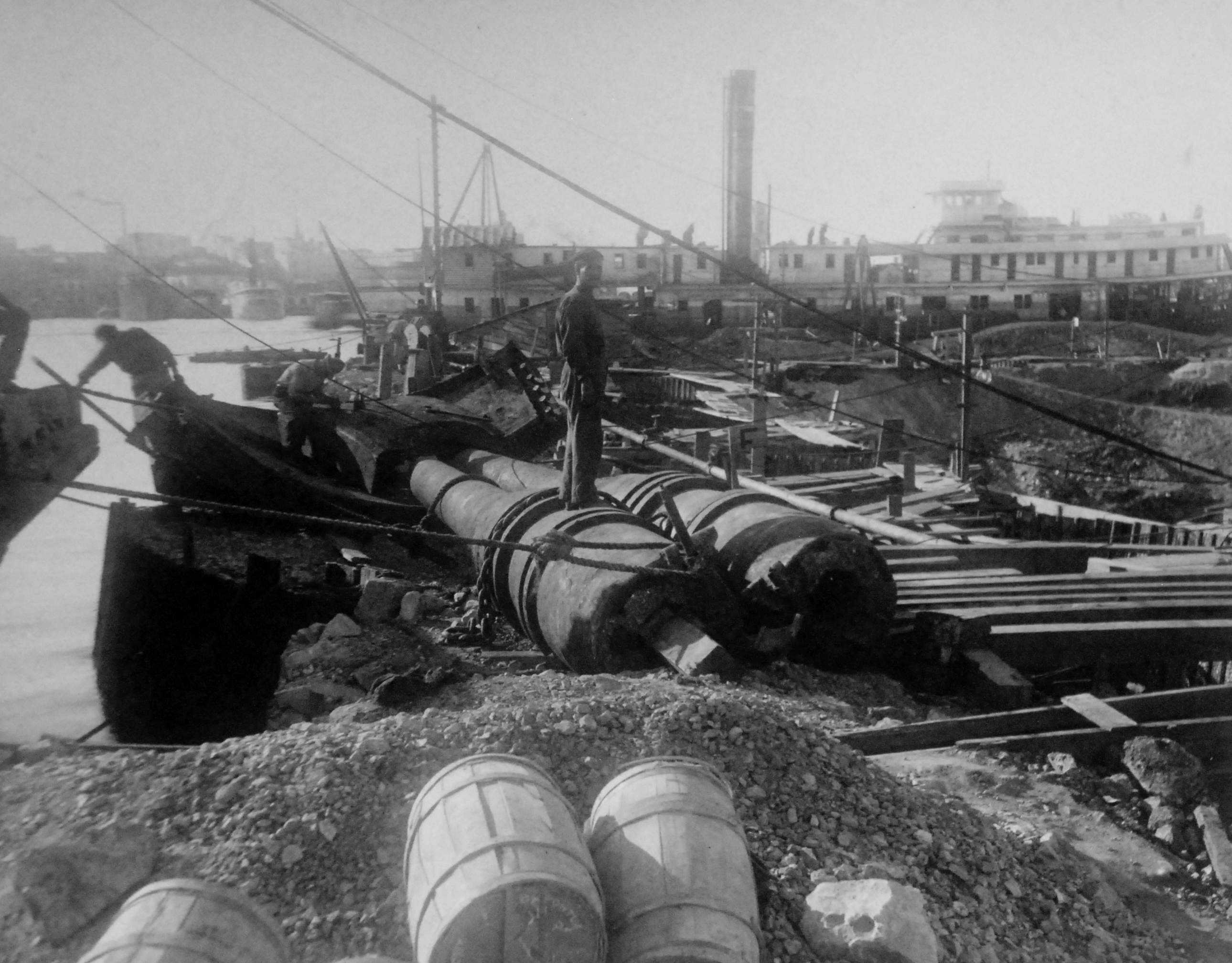 ![]() | 362k | Maine wreck moored outside of cofferdam. The tugs alongside are all civilian contractors. | Photo i.d. via David Wright. USN photo # Lot 8936-56, from the National Museum of the U.S. Navy, courtesy of flickr.com. | |