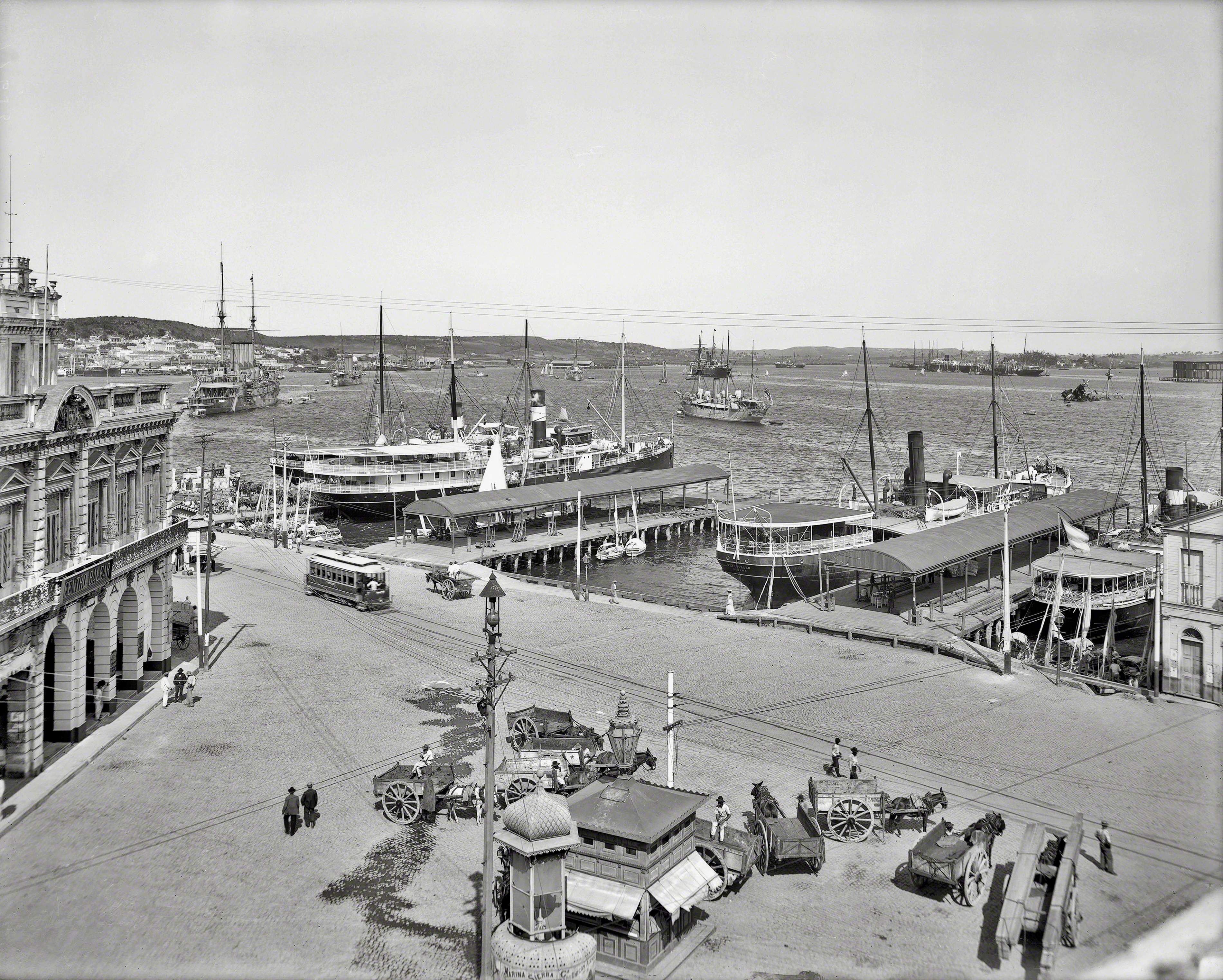 ![]() | 4.09k | THE BEGINNING AND END OF THE TRAGEDY OF THE MAINE. Photograph of the American battleship entering the harbor of Havana on a friendly visit, 25 January 1898. Roses on Its Decks Will Float When Battleship Disappears Forever...After the Ceremony Thirty-four Coffins Will Be Brought Home by the Cruiser North Carolina (ACR-12). | Image and text provided by Library of Congress, Washington, DC. Photo from New-York Tribune. (New York [N.Y.]) 1866-1924, 16 March 1912, Image 1, via chroniclingamerica.loc.gov. | |