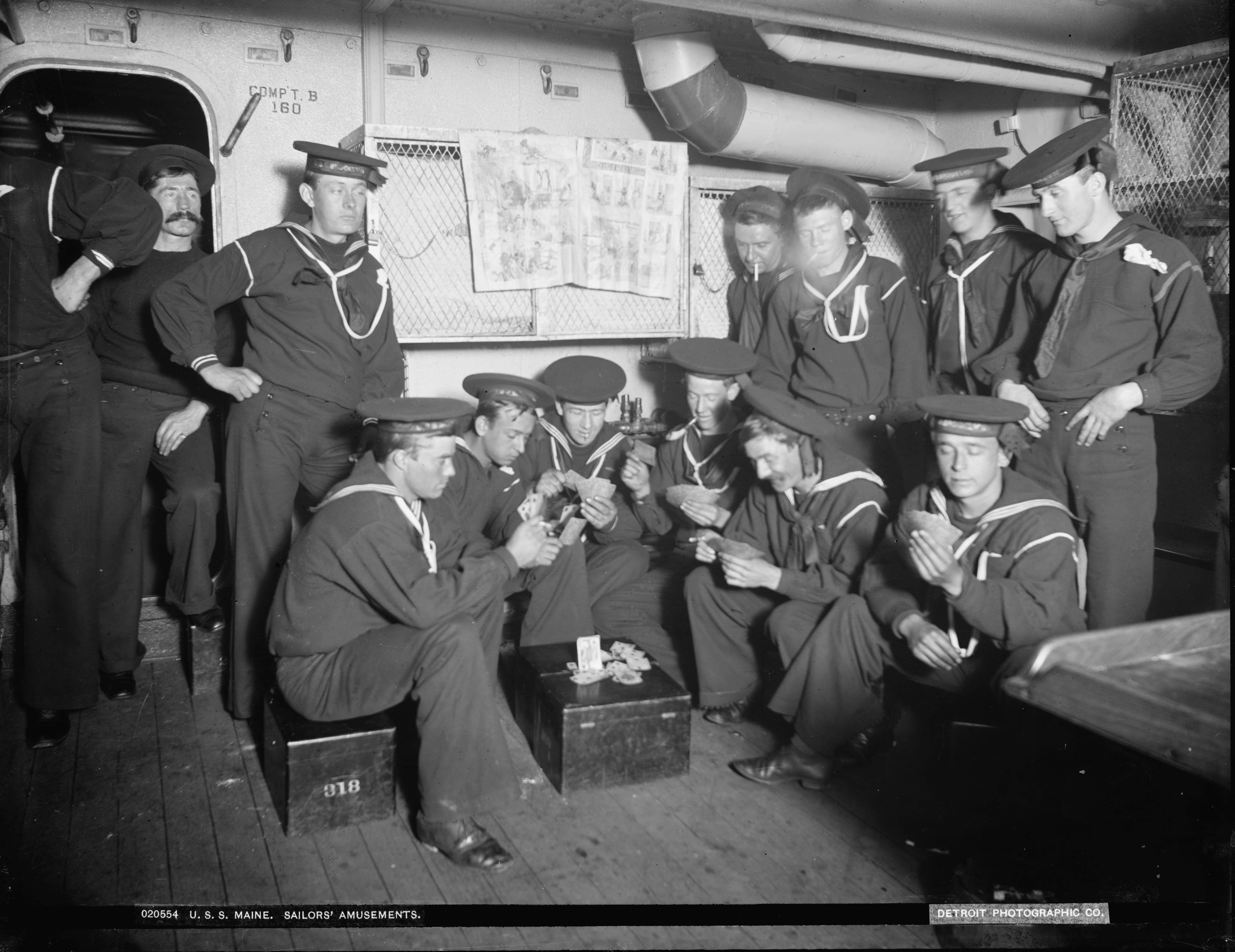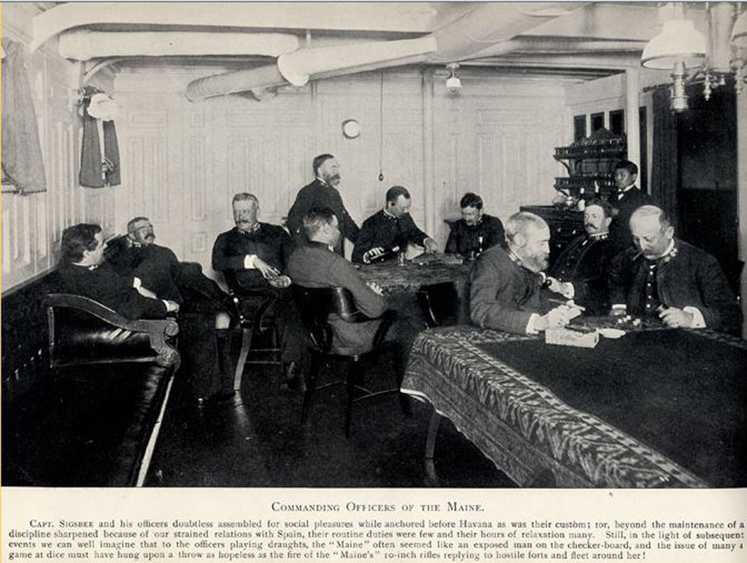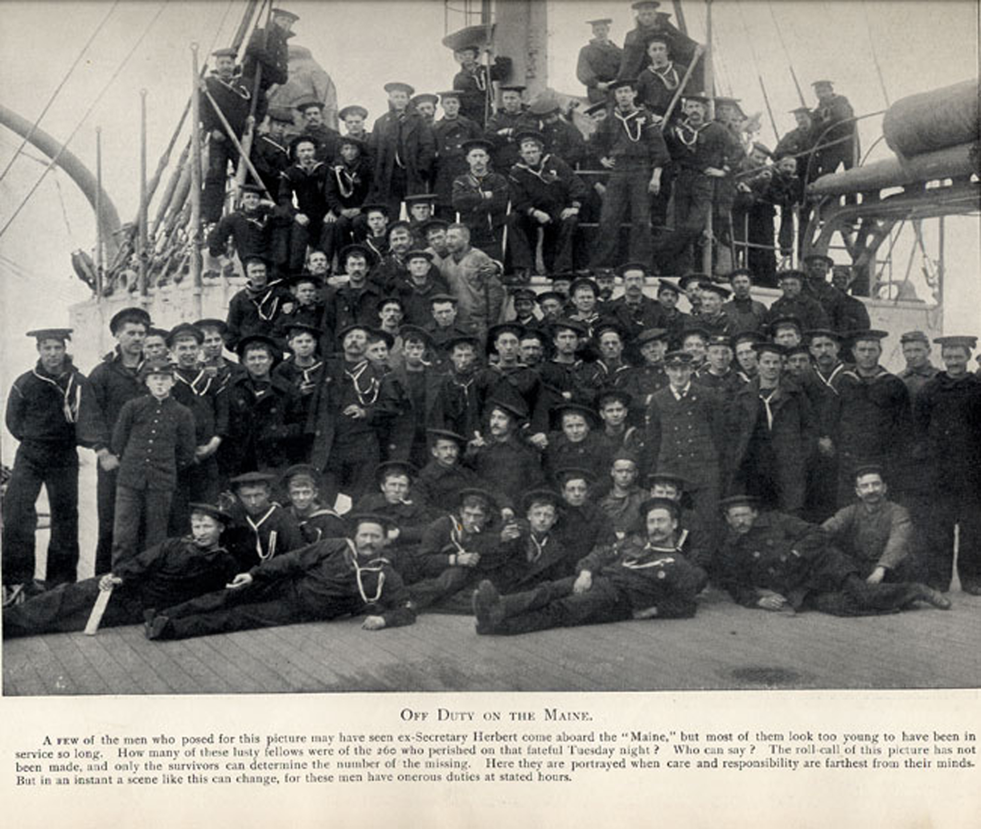 1.20k | Off duty on the Maine. | Image and text provided by Library of Congress, Washington, DC. Photo courtesy of New-York Tribune. (New York [N.Y.]) 1866-1924, 18 February 1898, Image 3, via chroniclingamerica.loc.gov. Photo via uwm.edu & The American Navy with Introduction and Descriptive Text - Reproductions of Photographs - Belford, Middlebrook & Co. - Chicago, 1898, submitted by Thomas Becher. |