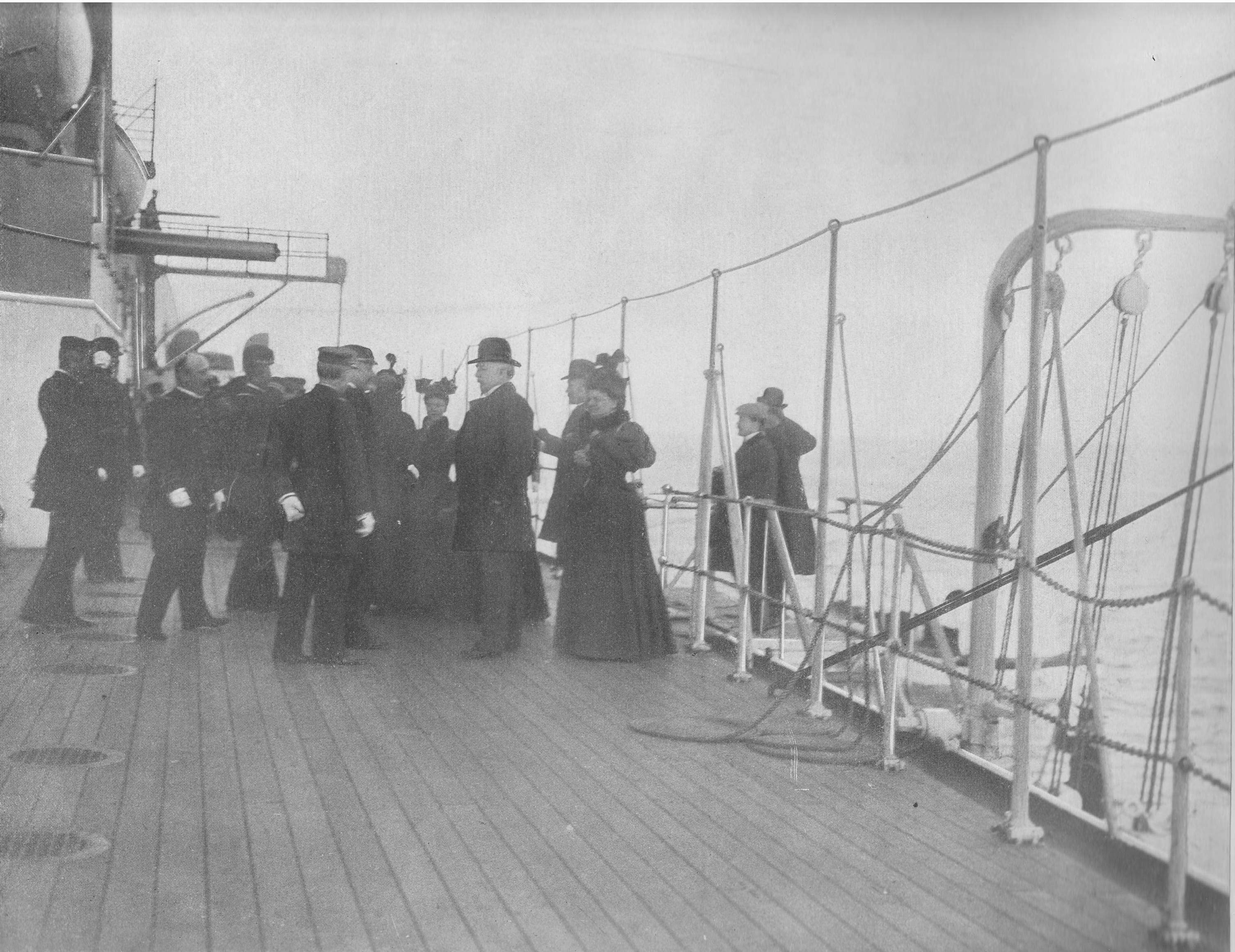 ![]() | 1.00k | Miss Alice Tracy Wilmerding, granddaughter of Secretary of the Navy Benjamin Tracy, and his majestic self appear on the launching platform of the Maine on 18 November 1890. | Photo courtesy of Arnold Putnam. | |