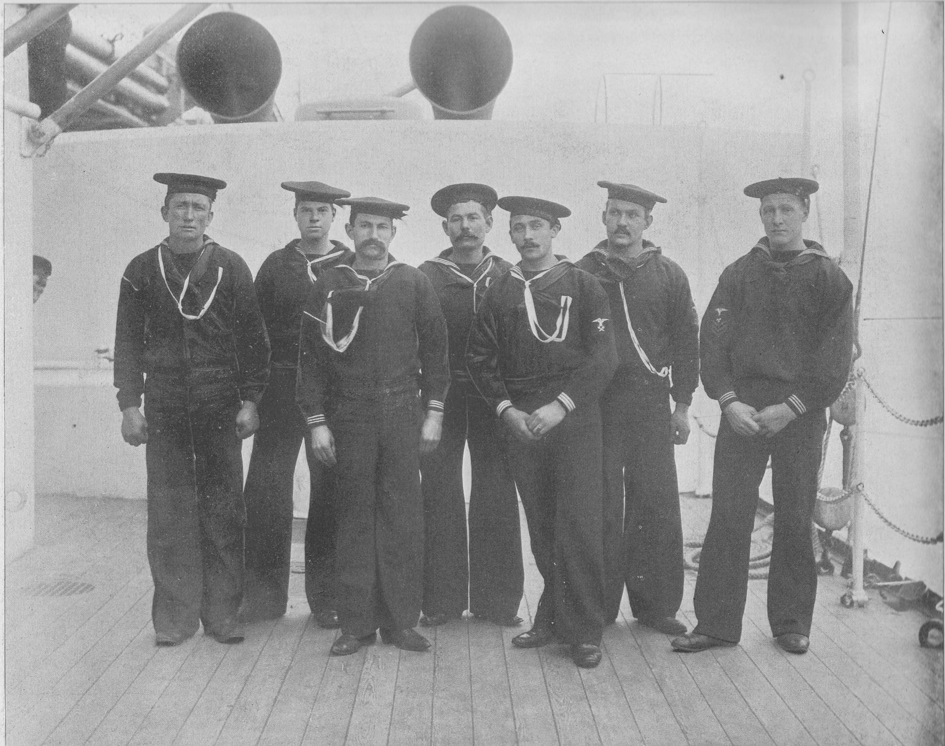 ![]() | 1.00k | Maine men, three up, three down. | Photo from The American Navy with Introduction and Descriptive Text - Reproductions of Photographs - Belford, Middlebrook & Co. - Chicago, 1898, submitted by Thomas Becher. | |