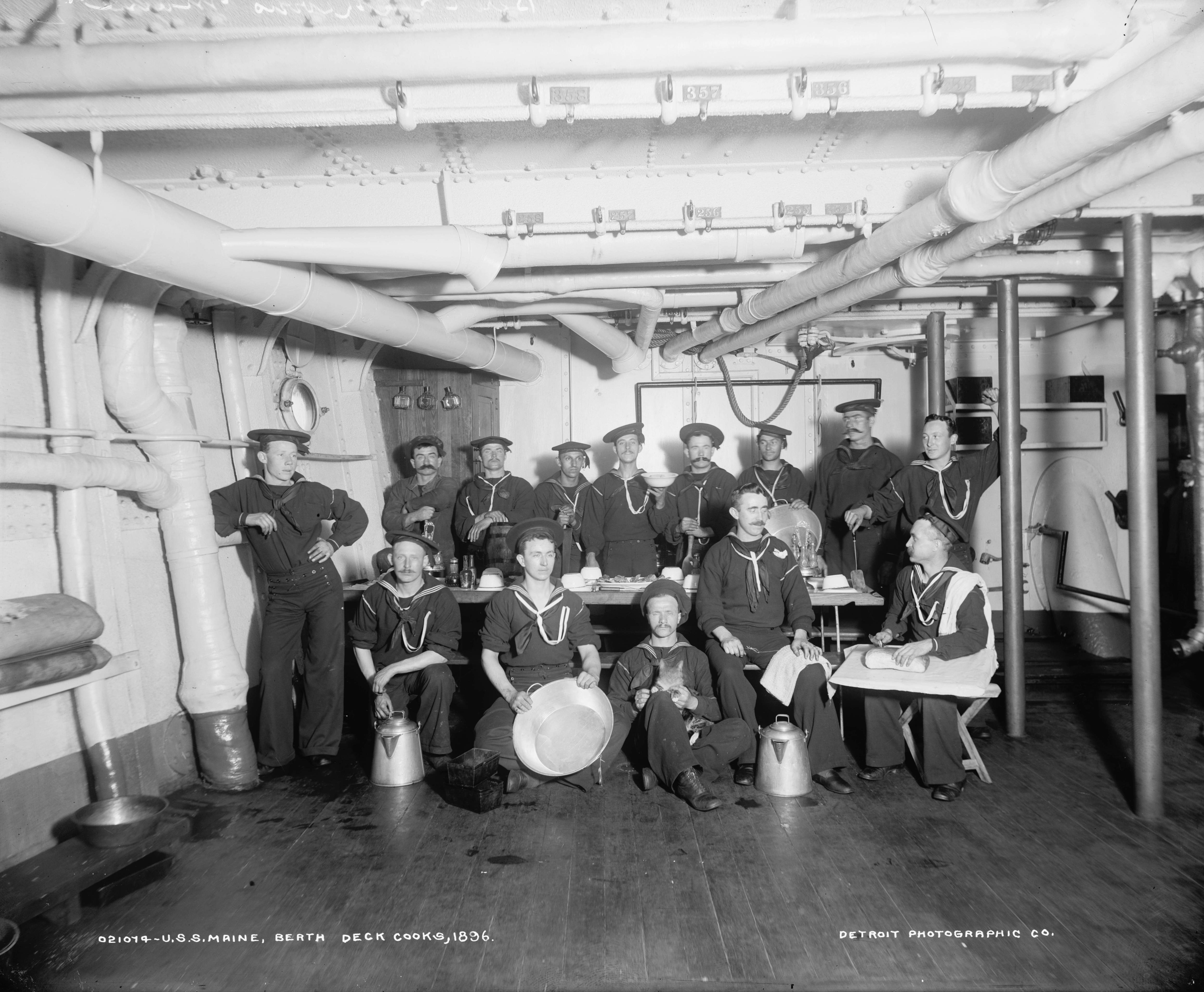 ![]() maine2p | 1.05k | One of the ship's torpedo rooms, 1896. | Photo from the Detroit Publishing Co, Edward H. Hart, photographer, via the Library of Congress. Reproduction Number: LC-DIG-det-4a14353. Photo courtesy of loc.gov. |
