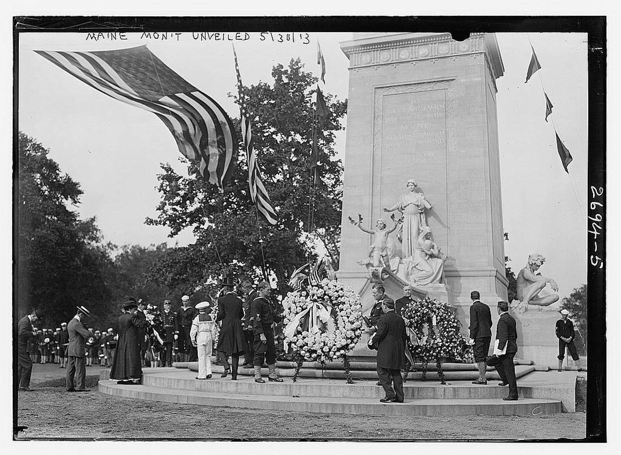 ![]() | 163k | Maine Monument unveiled - 30 May 1913. | Digital ID ggbain # 13031v. LC-B2-2694-5. Source: Library of Congress Prints and Photographs Division, from the George Grantham Bain Collection. Image and text provided by University of Utah, Marriott Library. Photo by The Logan Republican. (Logan, Utah) 1902-1924, 05 July 1913, Image 5, via chroniclingamerica.loc.gov. | |