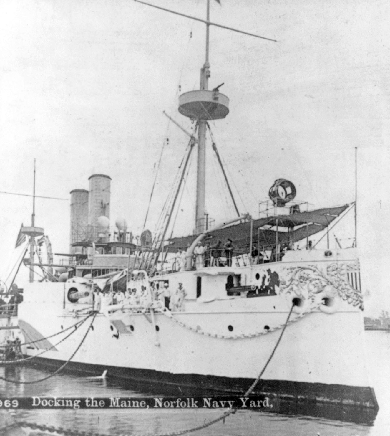 ![]() | 226k | Maine docking at Norfolk Navy Yard, Norfolk, Virginia. Photographed by Alfred S. Campbell, 17 December 1896. | USN photo # LC-USZ62-29943, courtesy of the Library of Congress, from the National Museum of the U.S. Navy, courtesy of flickr.com. | |