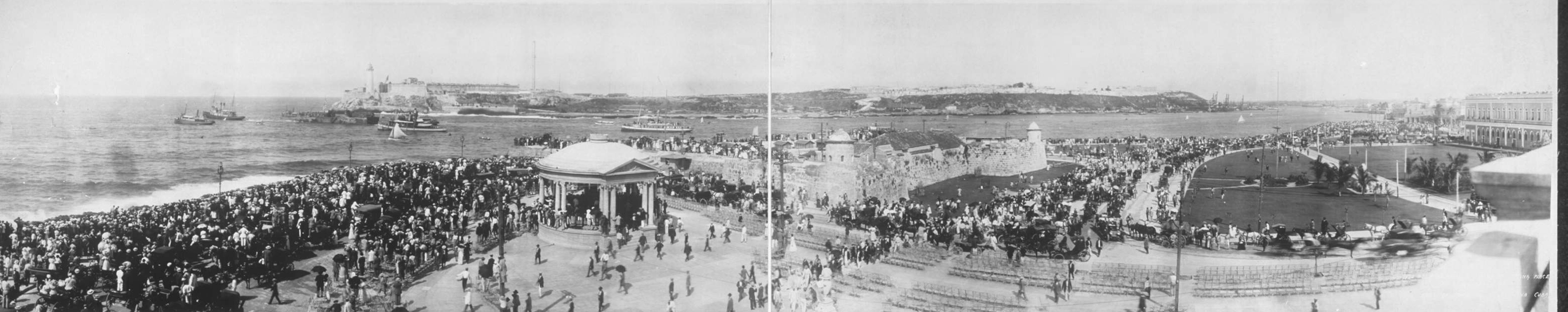 ![]() | 1.49k | The North Carolina & Birmingham escorting the Maine to sea. The Maine going to her last resting place. Photograph taken from Castillo de la Punta, Castillo del Morro visible in background. Crowds of people and automobiles on Malecon Drive. | Photo from the Bain News Service, Library of Congress Reproduction Number: LC-USZ62-87042. Photo courtesy of loc.gov. |
