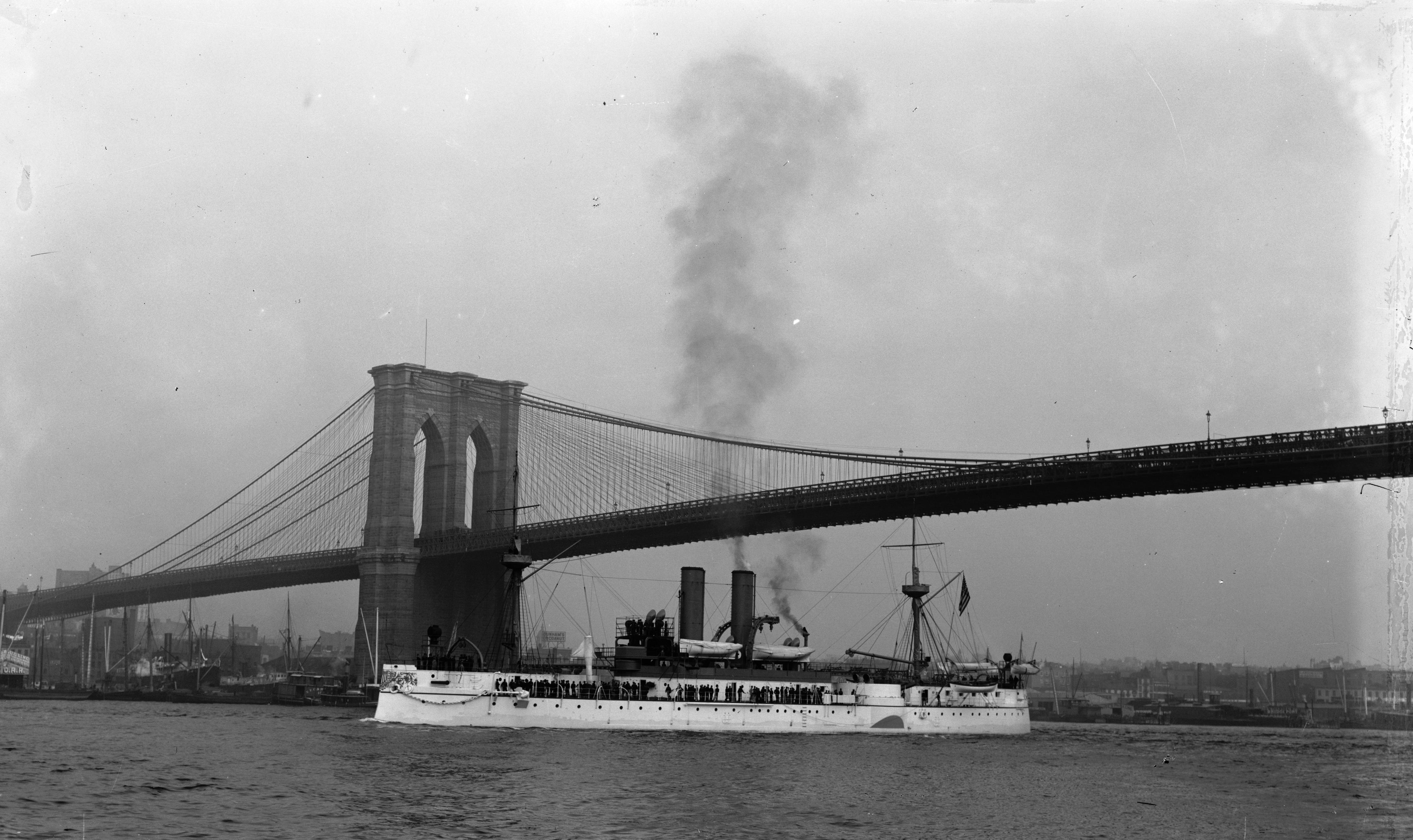 ![]() | 1.23k | Maine port view, passing under Brooklyn Bridge. | USN photo # LC-DIG-DET-4a05501, Published by Detroit Publishing Company, 1895-98, courtesy of the National Museum of the U.S. Navy, via flickr.com. | |